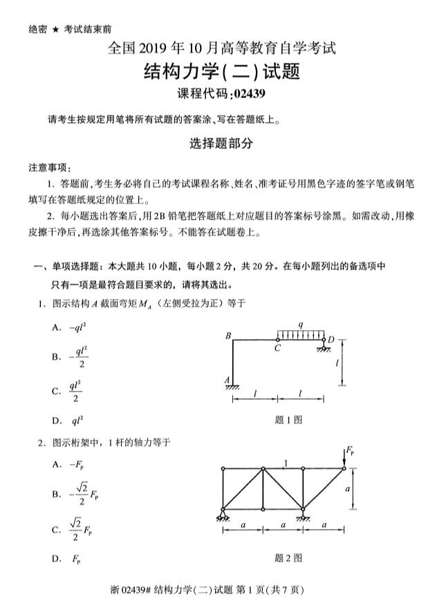 • 所在位置:浙江自考网 > 自考试卷 > 全国2019年10月自考02439结构力学(二)试题
