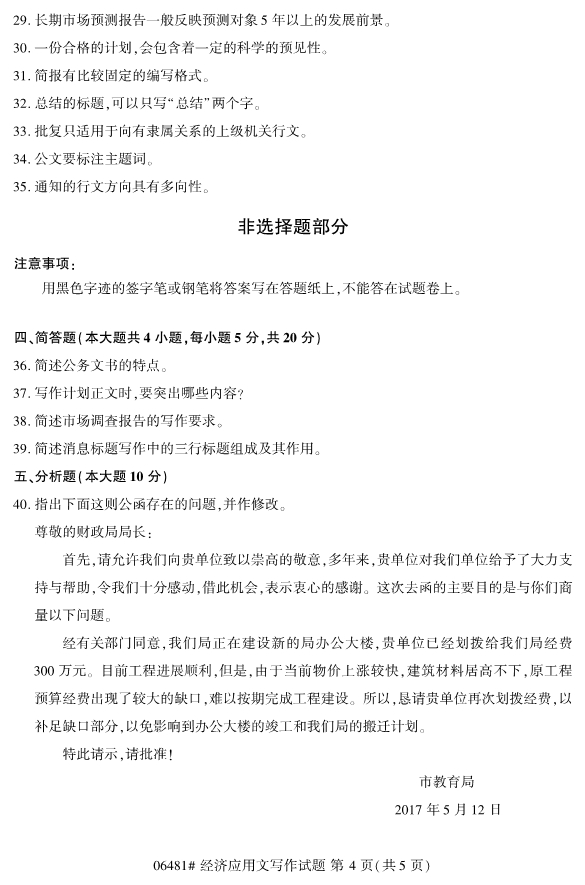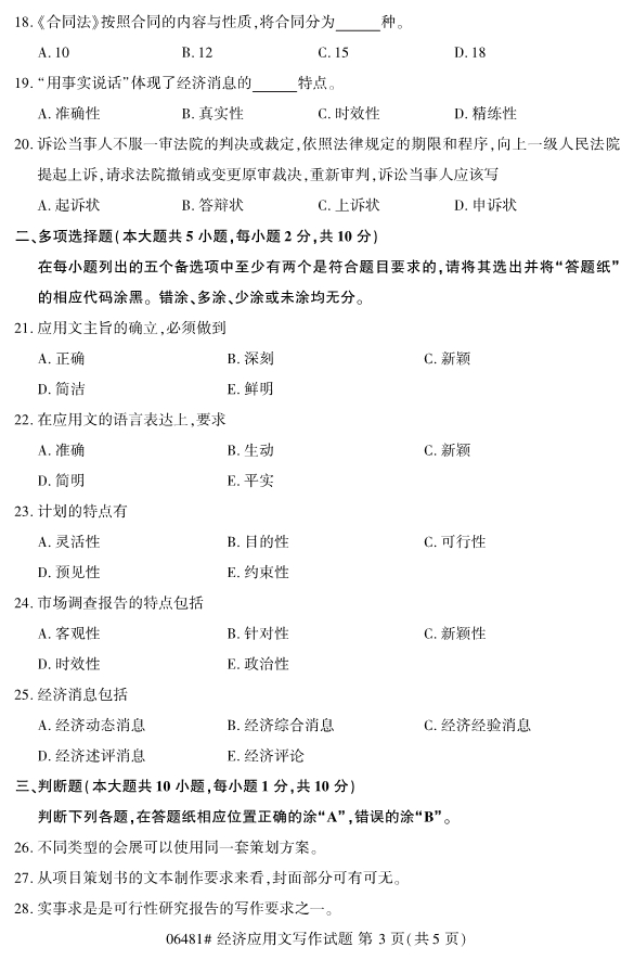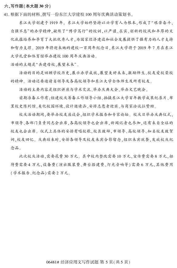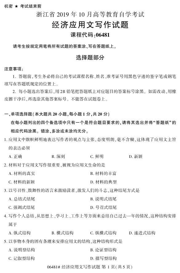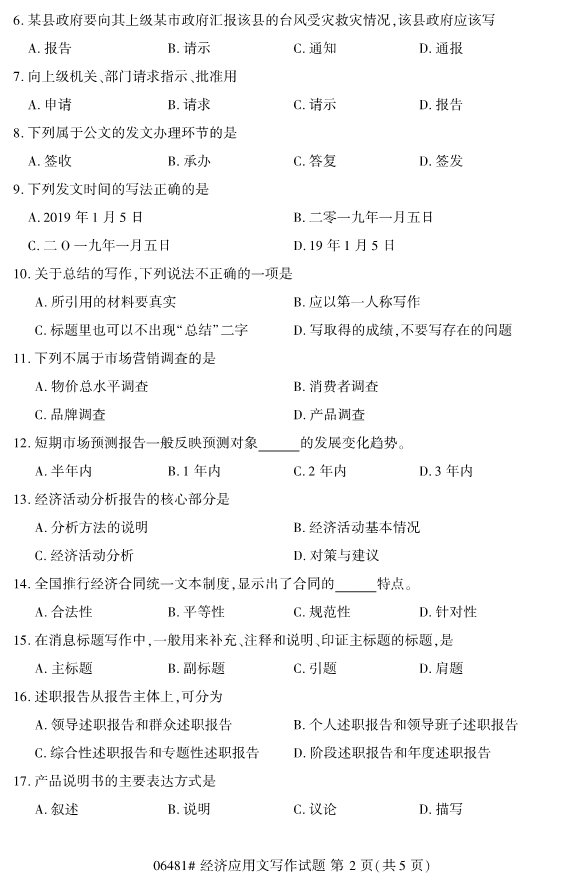 • 所在位置:浙江自考网 > 自考试卷 > 全国2019年10月自考06481经济应用文写作试题