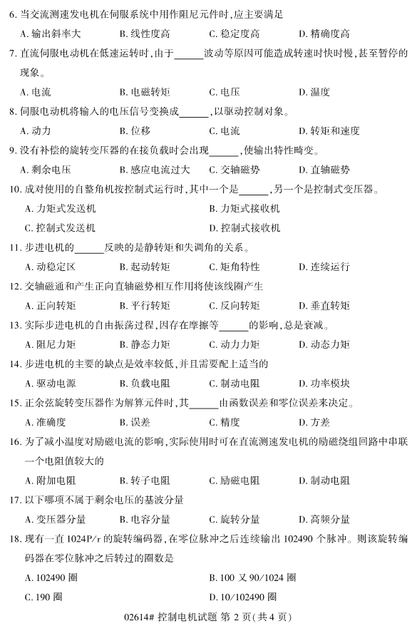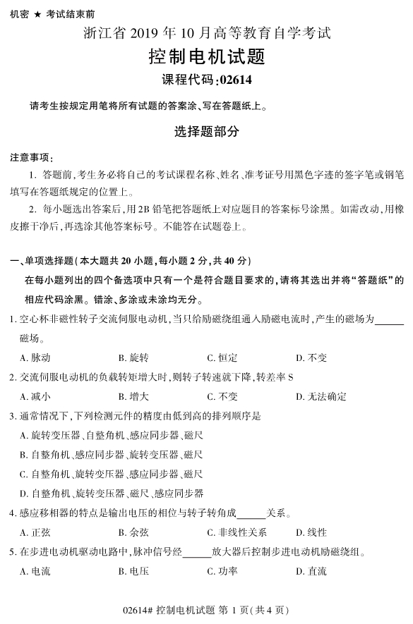 • 所在位置:浙江自考网 > 自考试卷 > 全国2019年10月自考02614控制电机试题