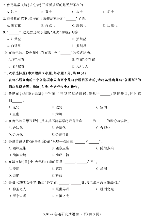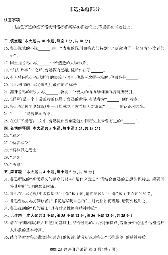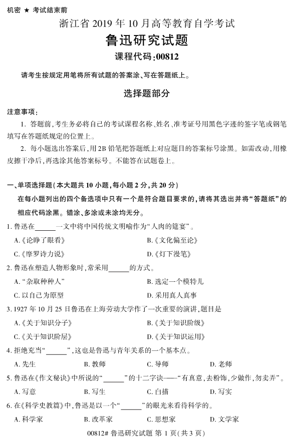 • 所在位置:浙江自考网 > 自考试卷 > 全国2019年10月自考00812鲁迅研究试题