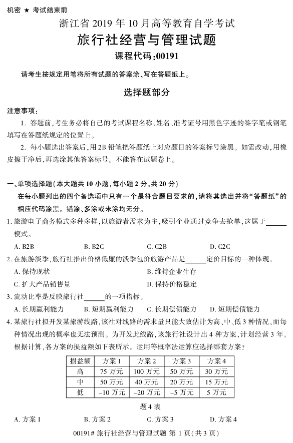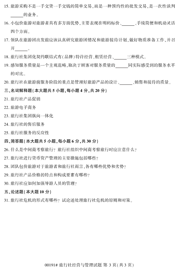 • 所在位置:浙江自考网 > 自考试卷 > 全国2019年10月自考00191旅行社经营与管理试题