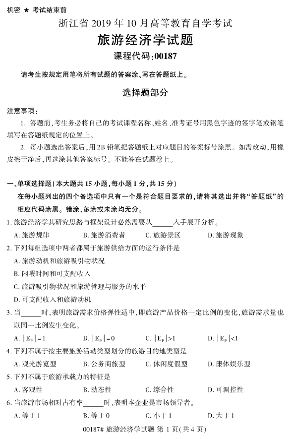 - 2024年10月浙江自考00102世界市场行情试题 12-27