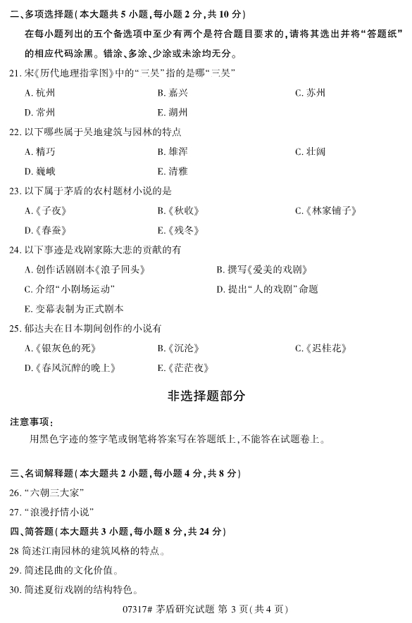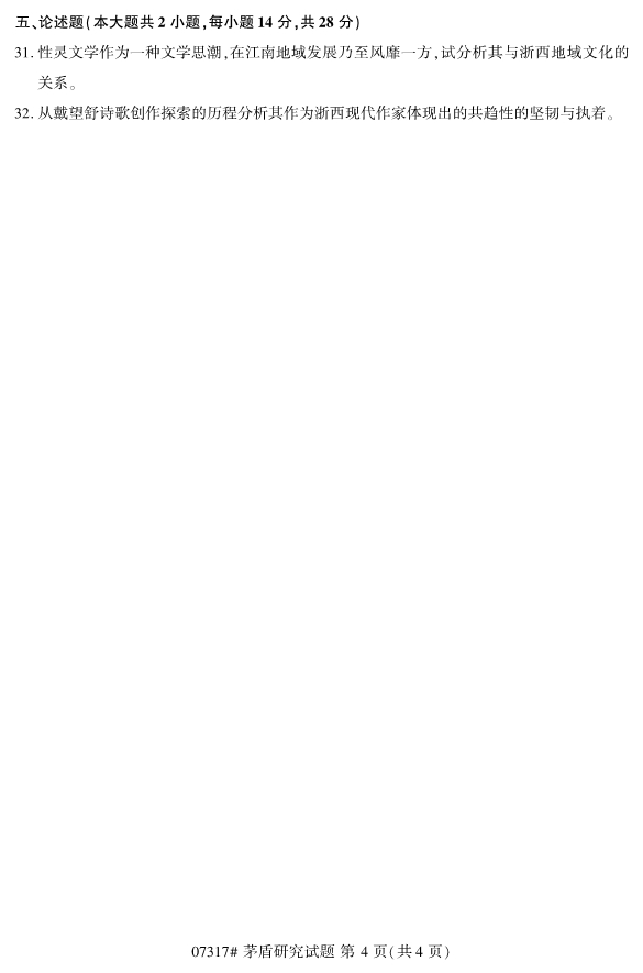 全国2019年10月自考07317茅盾研究试题