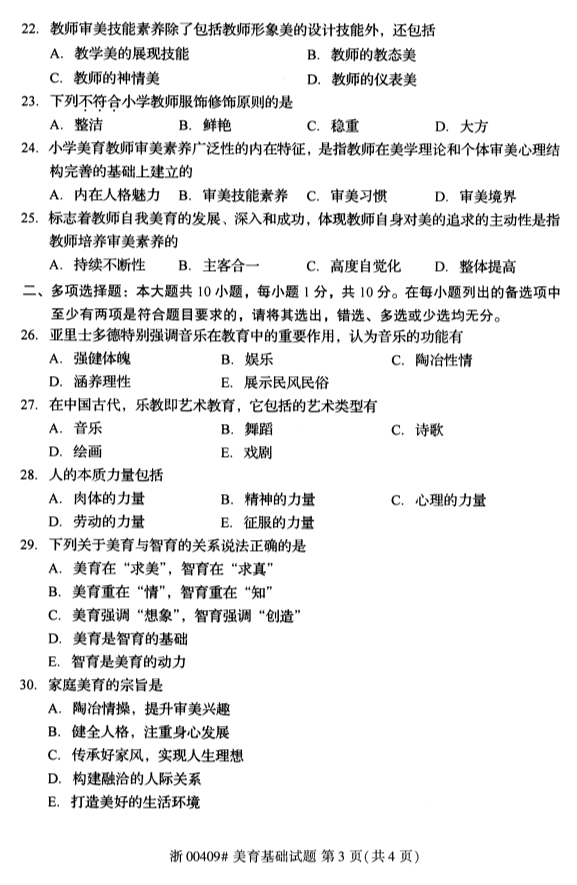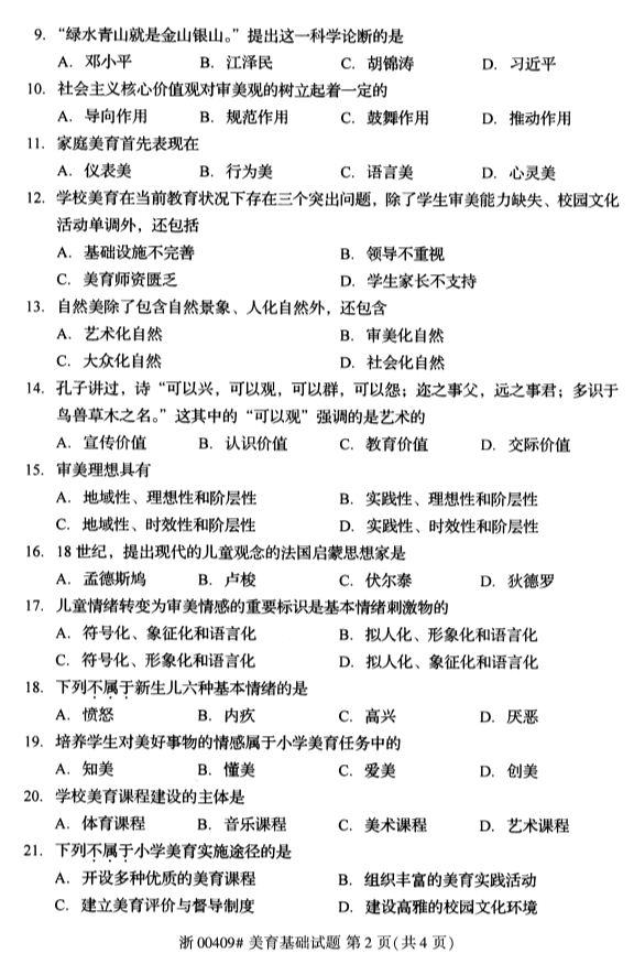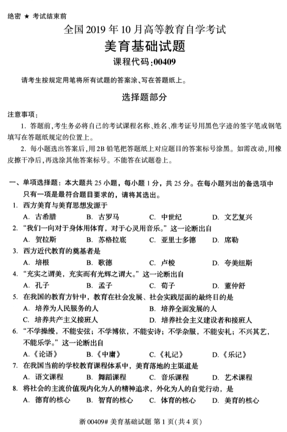 • 所在位置:浙江自考网 > 自考试卷 > 全国2019年10月自考00409美育基础试题