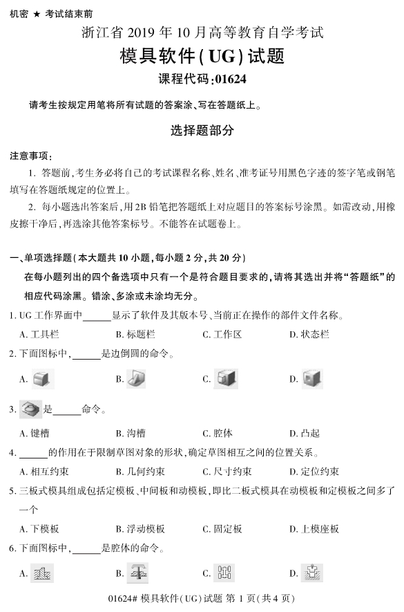 下一篇:全国2019年10月自考01628模具数控加工试题