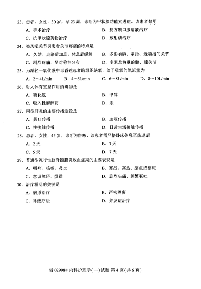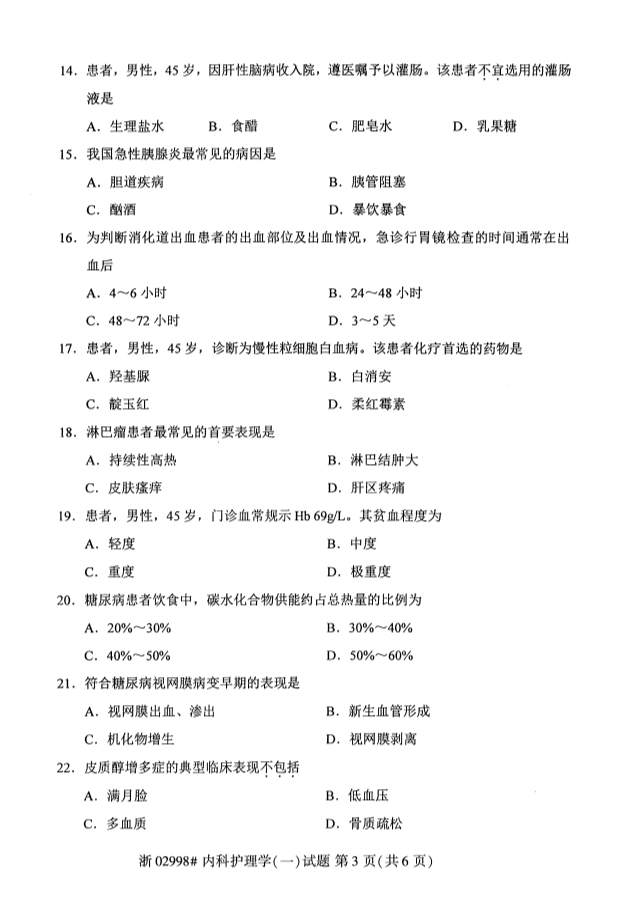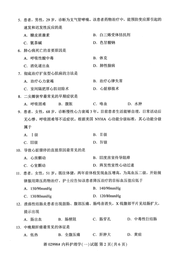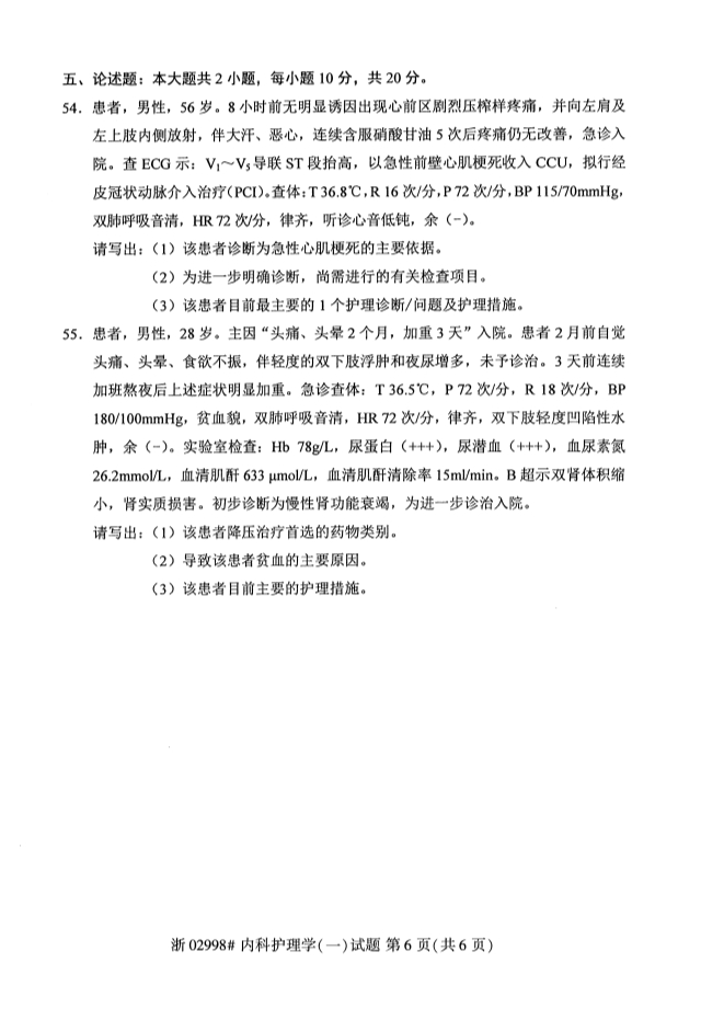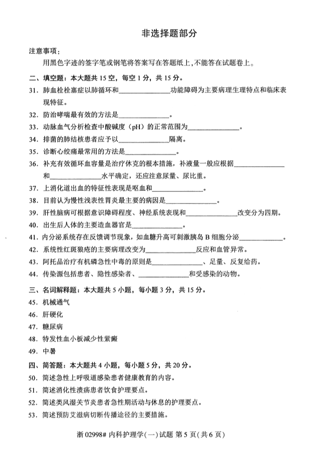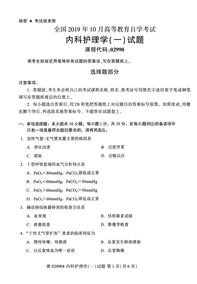 • 所在位置:浙江自考网 > 自考试卷 > 全国2019年10月自考02998内科护理学(一)试题