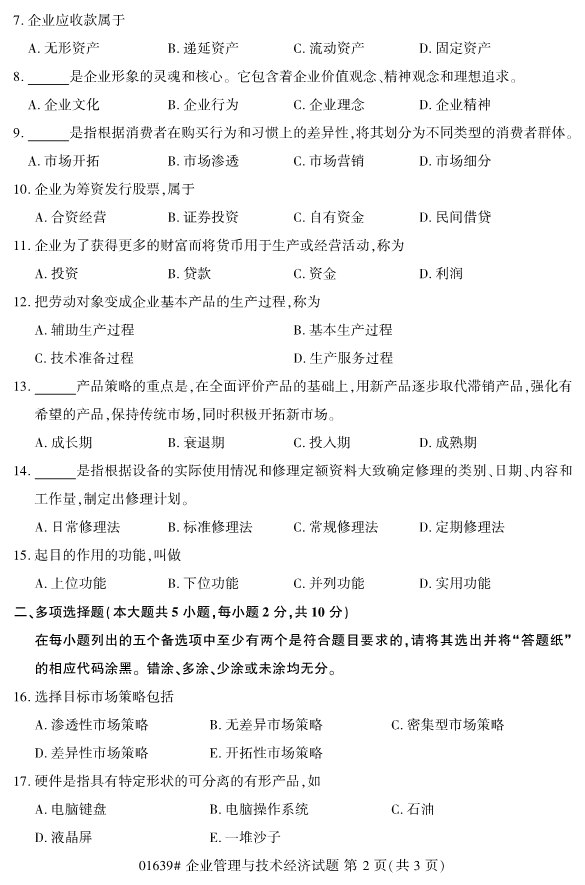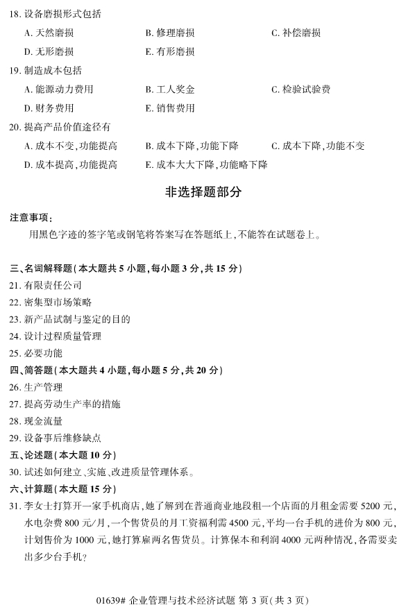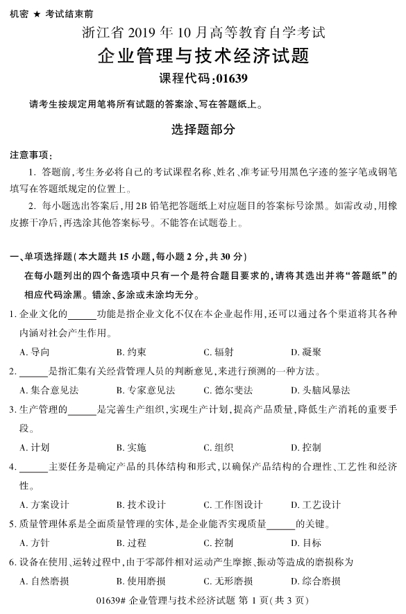 • 所在位置:浙江自考网 > 自考试卷 > 全国2019年10月自考01639企业管理与技术经济试题