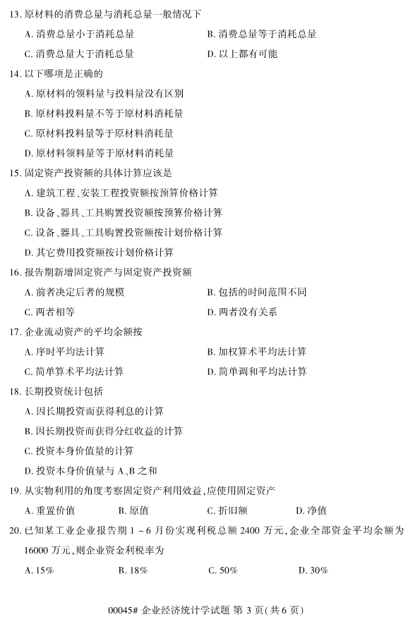 - 2024年10月浙江自考00067财务管理学试题 12-20