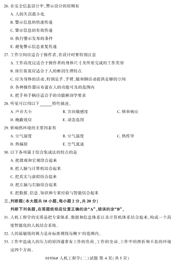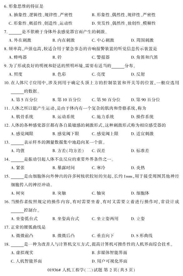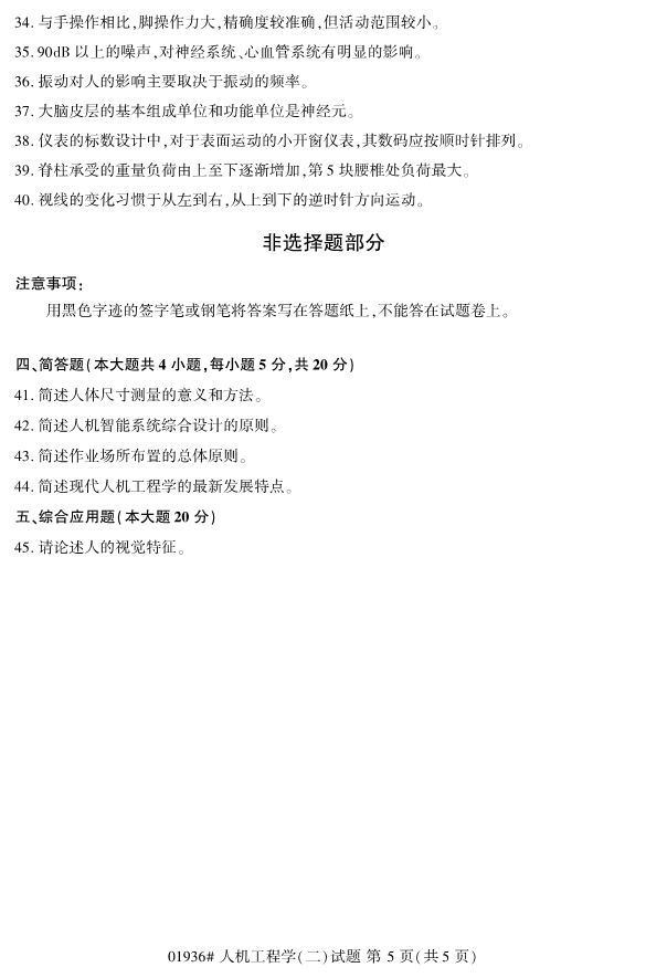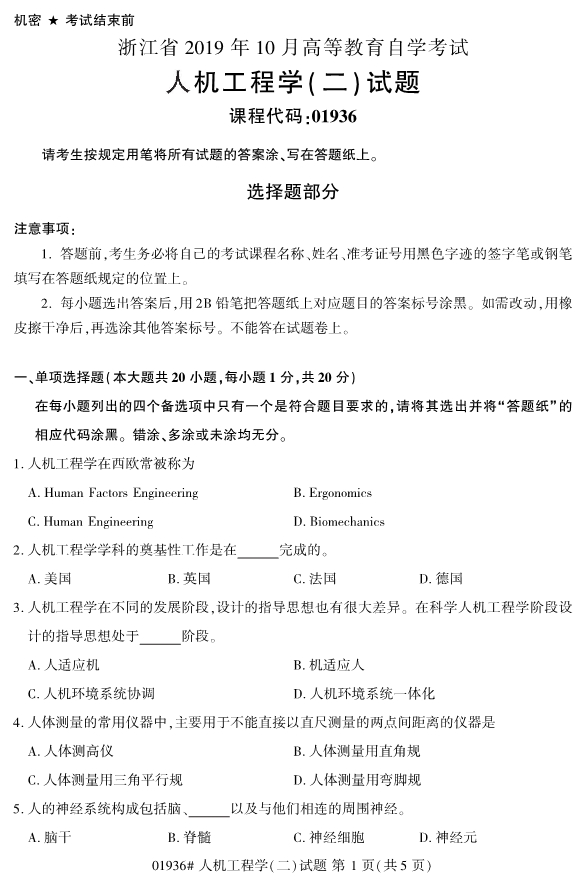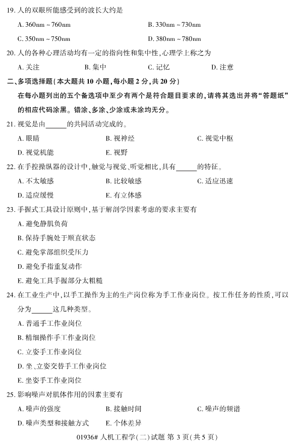 全国2019年10月自考01936人机工程学(二)试题