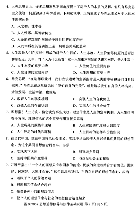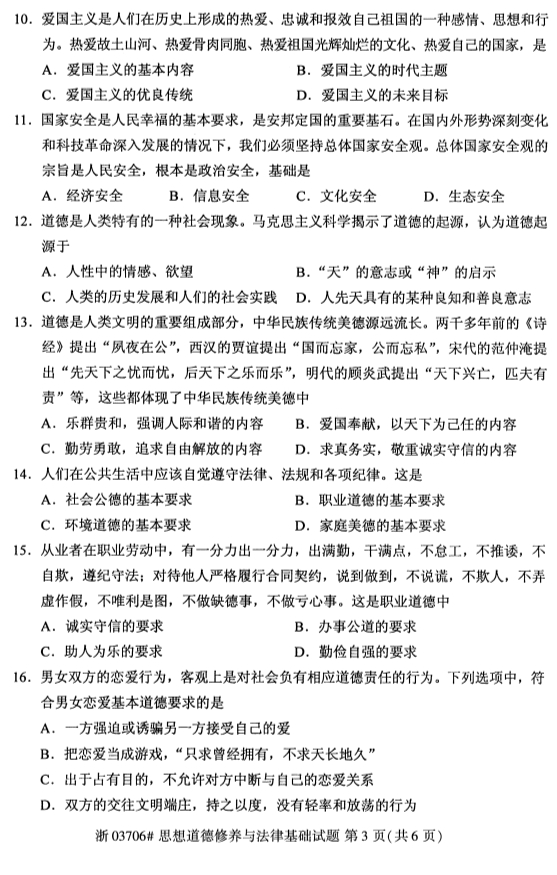 全国2019年10月自考03706思想道德修养与法律基础试题