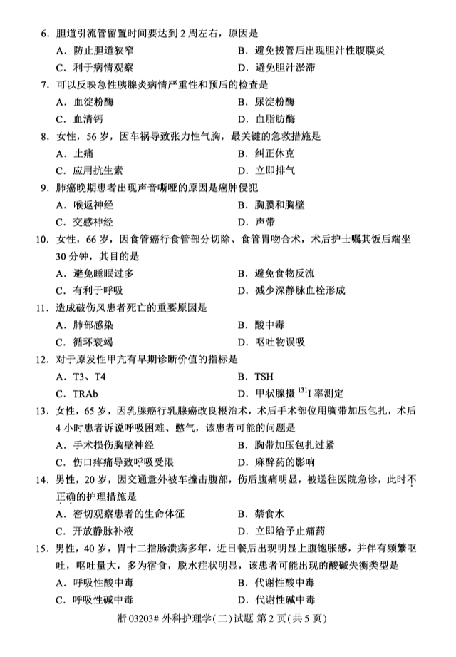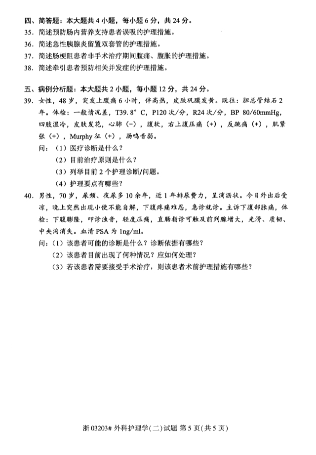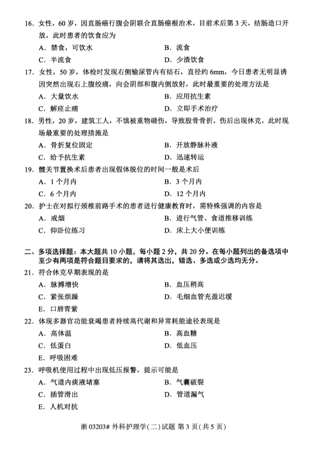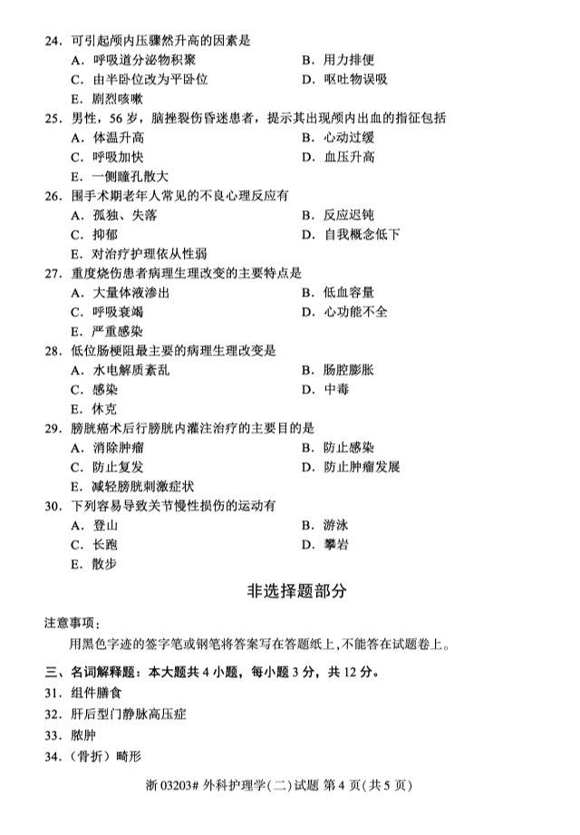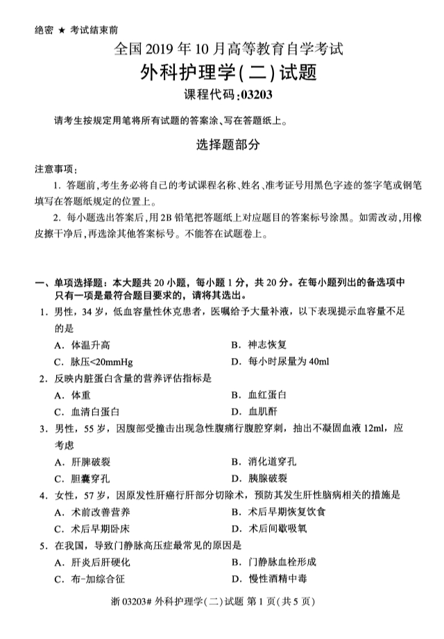 全国2019年10月自考03203外科护理学(二)试题