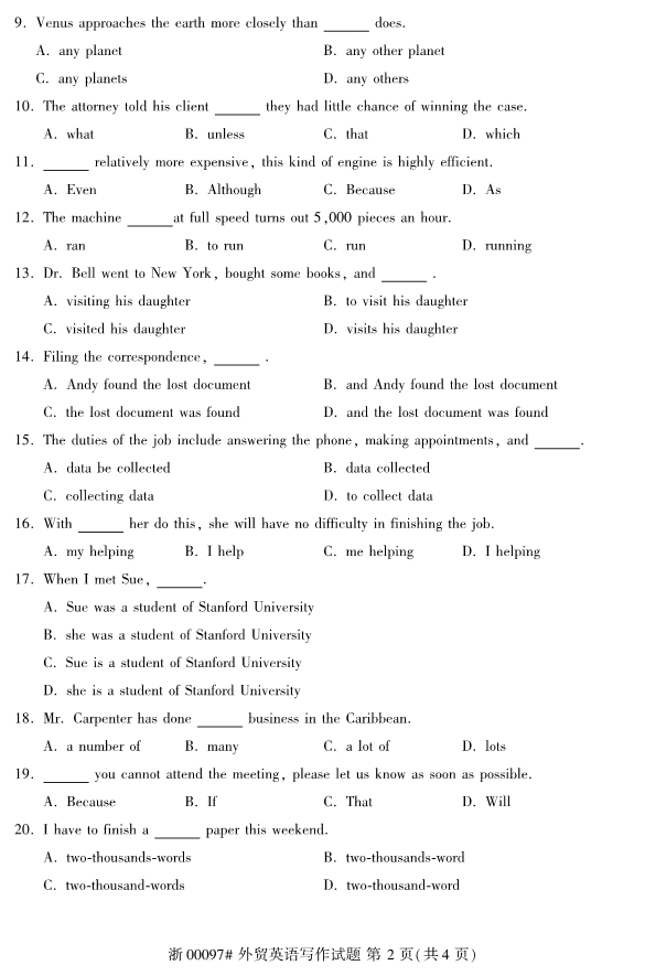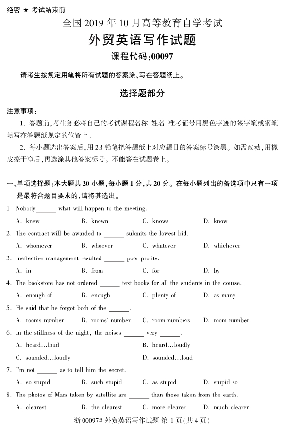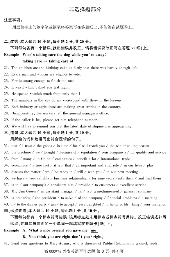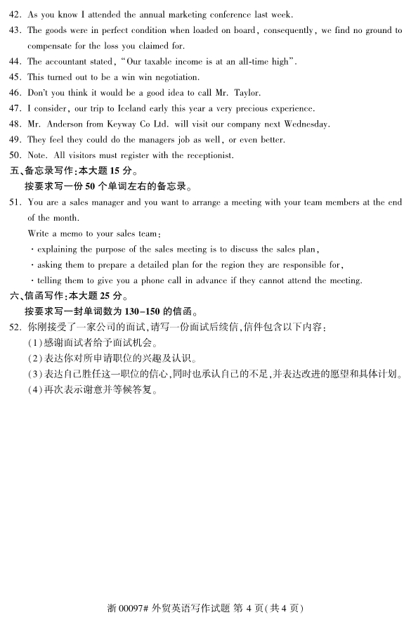 全国2019年10月自考00097外贸英语写作试题