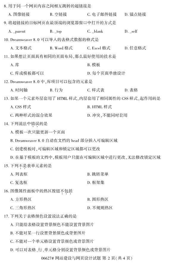 全国2019年10月自考06627网站建设与网页设计试题