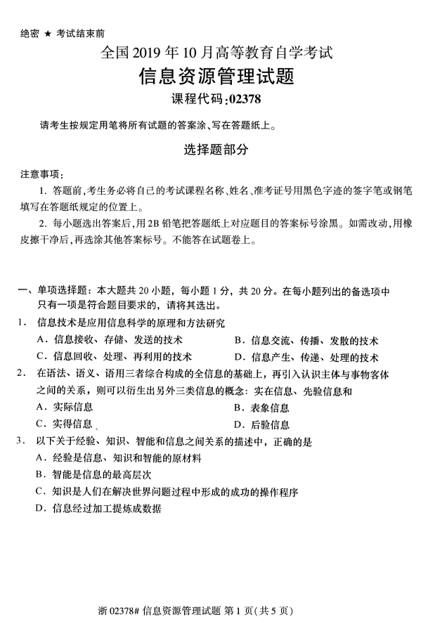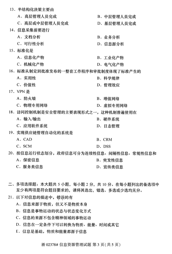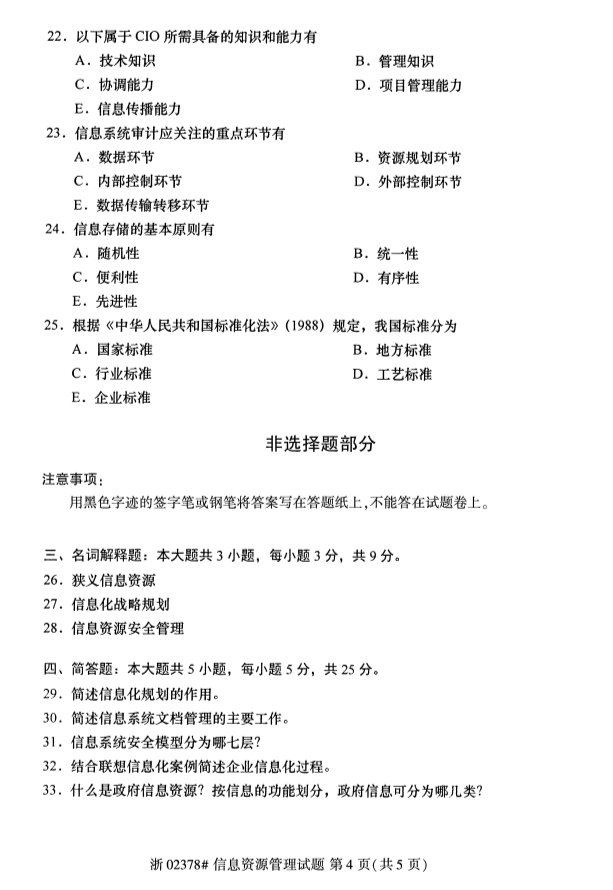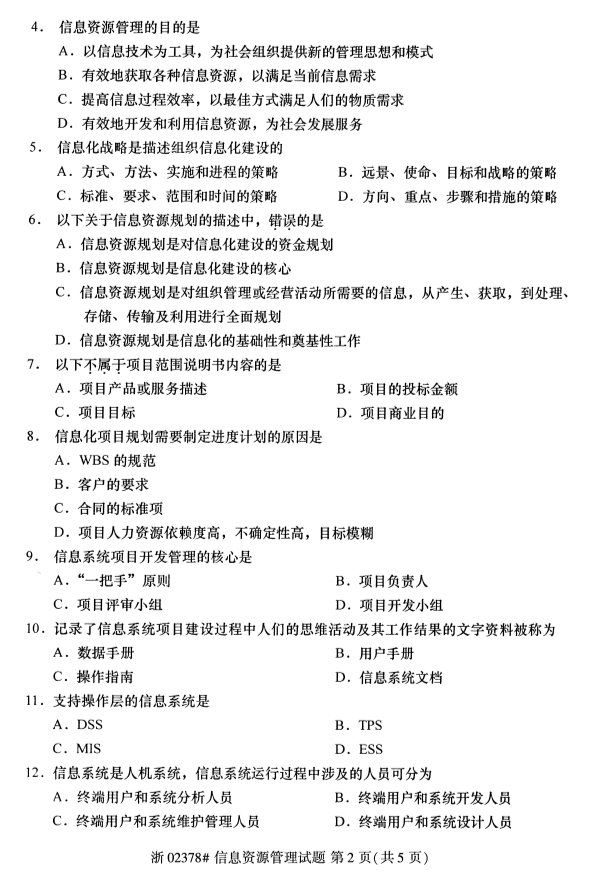 • 所在位置:浙江自考网 > 自考试卷 > 全国2019年10月自考02378信息资源管理试题