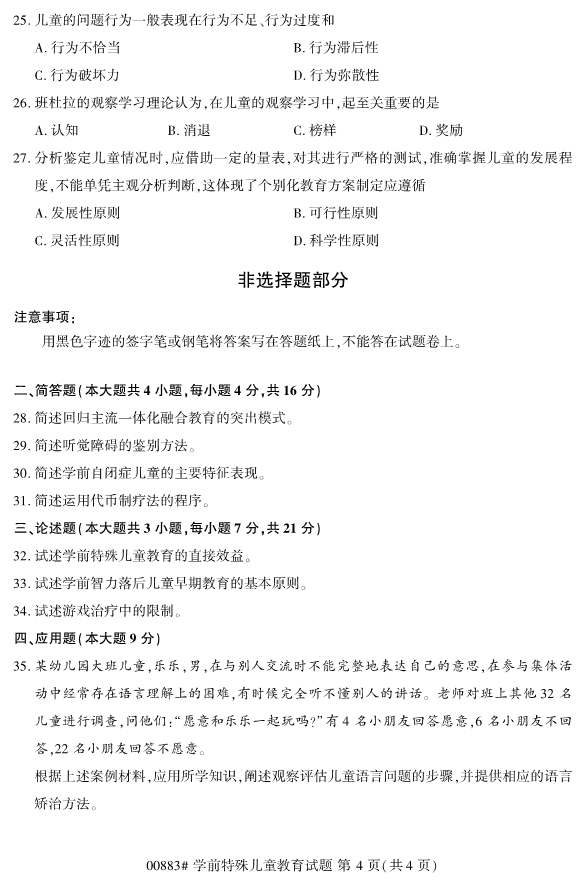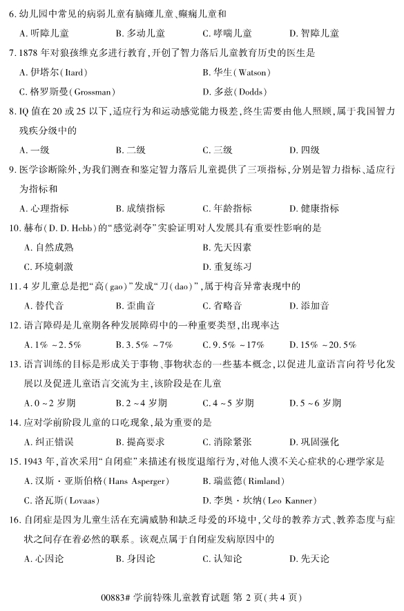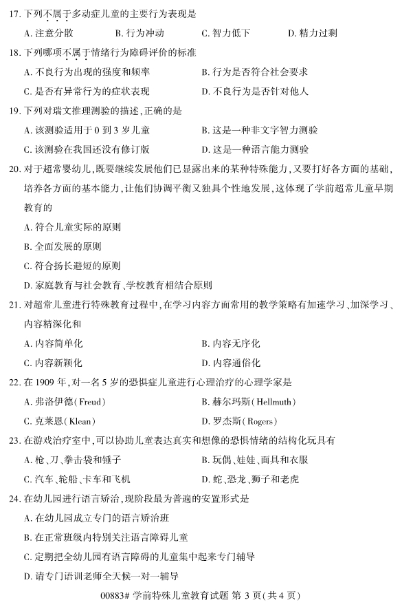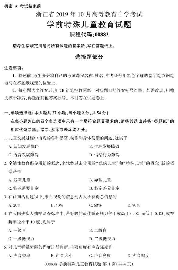 • 所在位置:浙江自考网 > 自考试卷 > 全国2019年10月自考00883学前特殊儿童教育试题