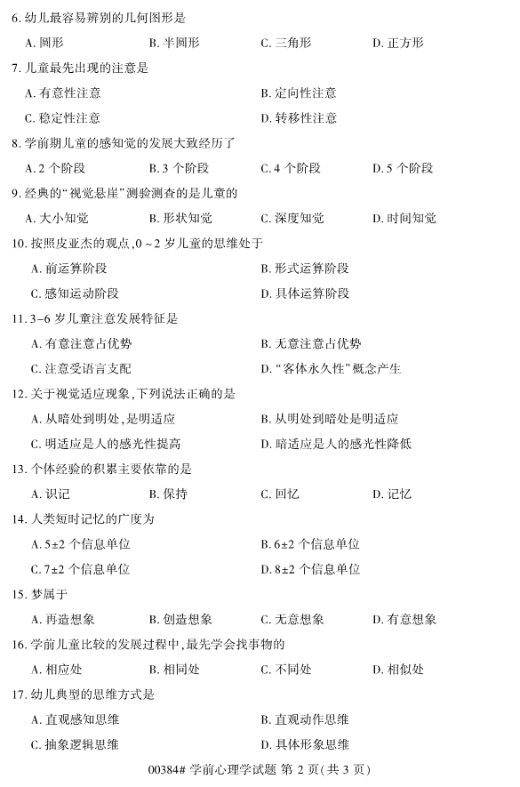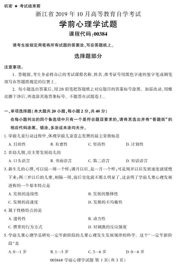 • 所在位置:浙江自考网 > 自考试卷 > 全国2019年10月自考00384学前心理学试题