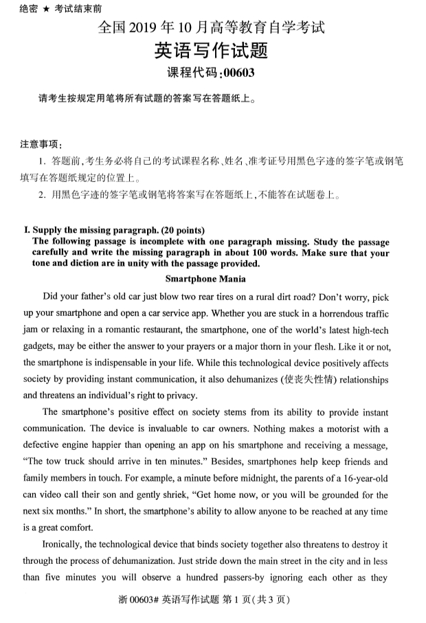 • 所在位置:浙江自考网 > 自考试卷 > 全国2019年10月自考00603英语写作试题