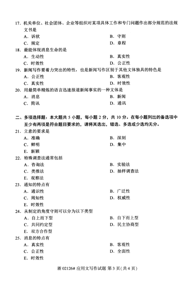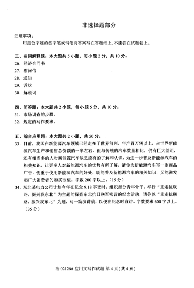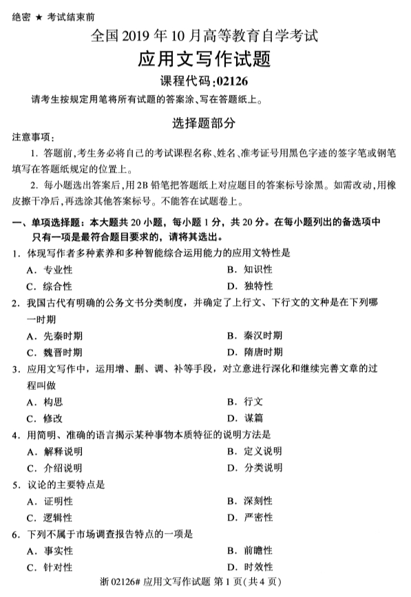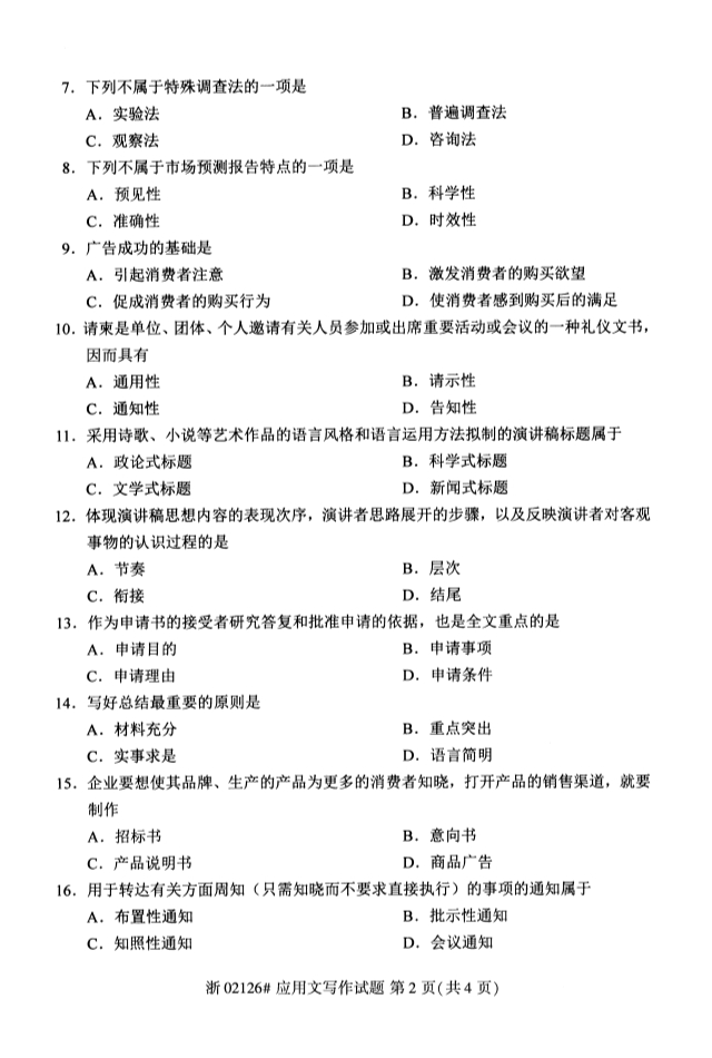 • 所在位置:浙江自考网 > 自考试卷 > 全国2019年10月自考02126应用文写作试题