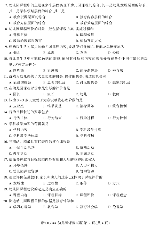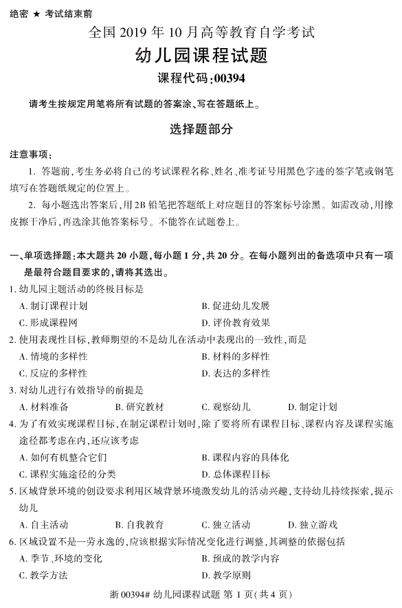 • 所在位置:浙江自考网 > 自考试卷 > 全国2019年10月自考00394幼儿园课程试题