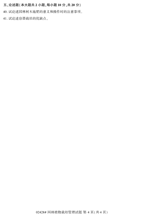 • 所在位置:浙江自考网 > 自考试卷 > 全国2019年10月自考02428园林植物栽培管理试题