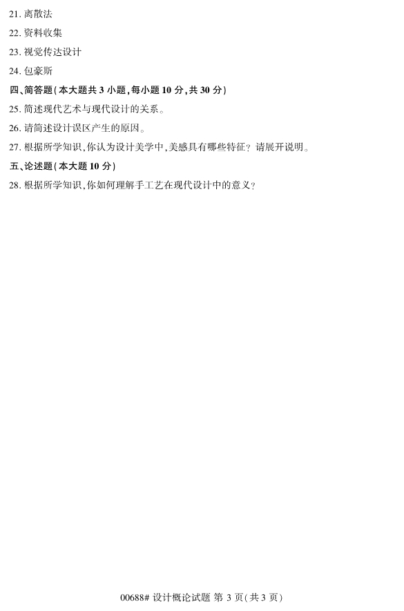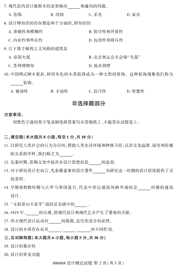 浙江2020年8月自学考试00688设计概论试题