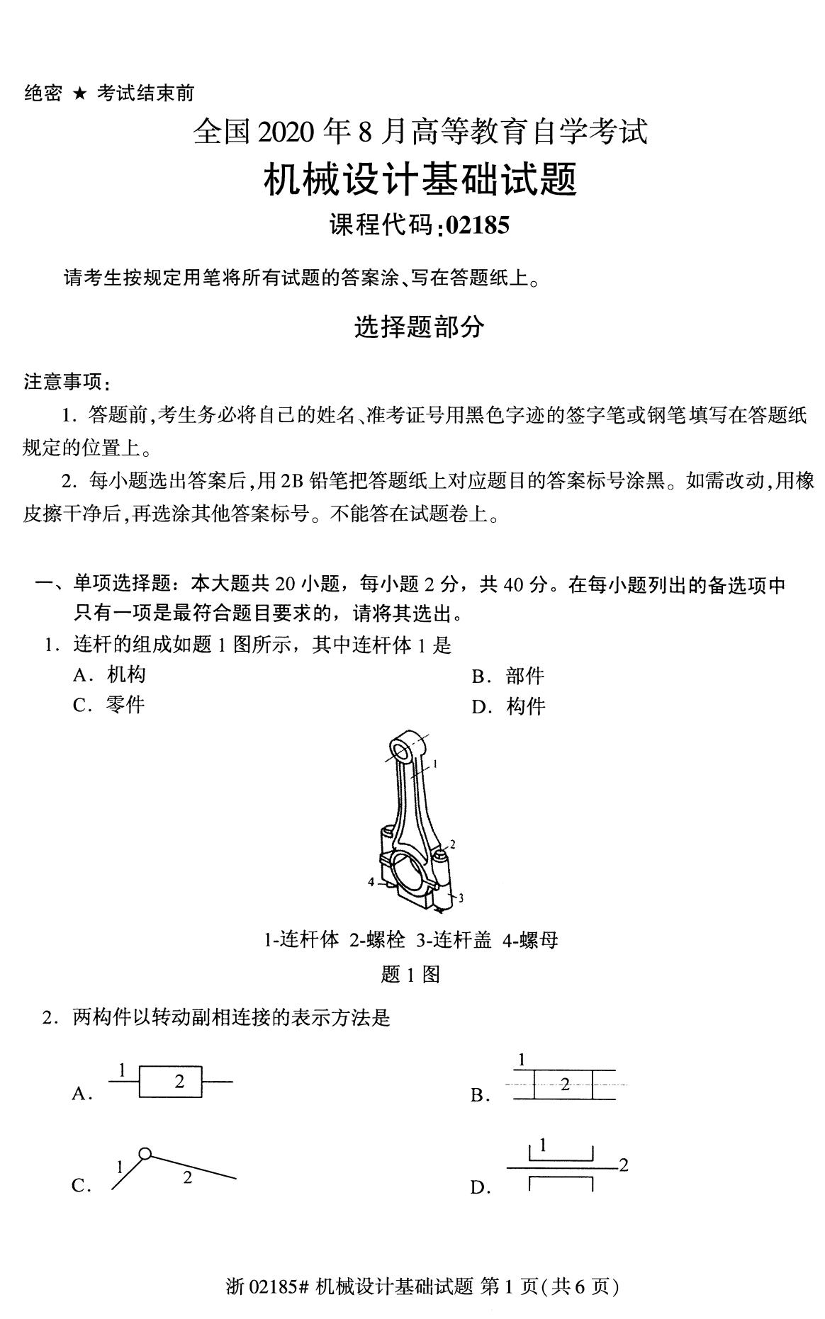 • 所在位置:浙江自考网 > 自考试卷 > 全国2020年8月自学考试02185机械设计基础试题