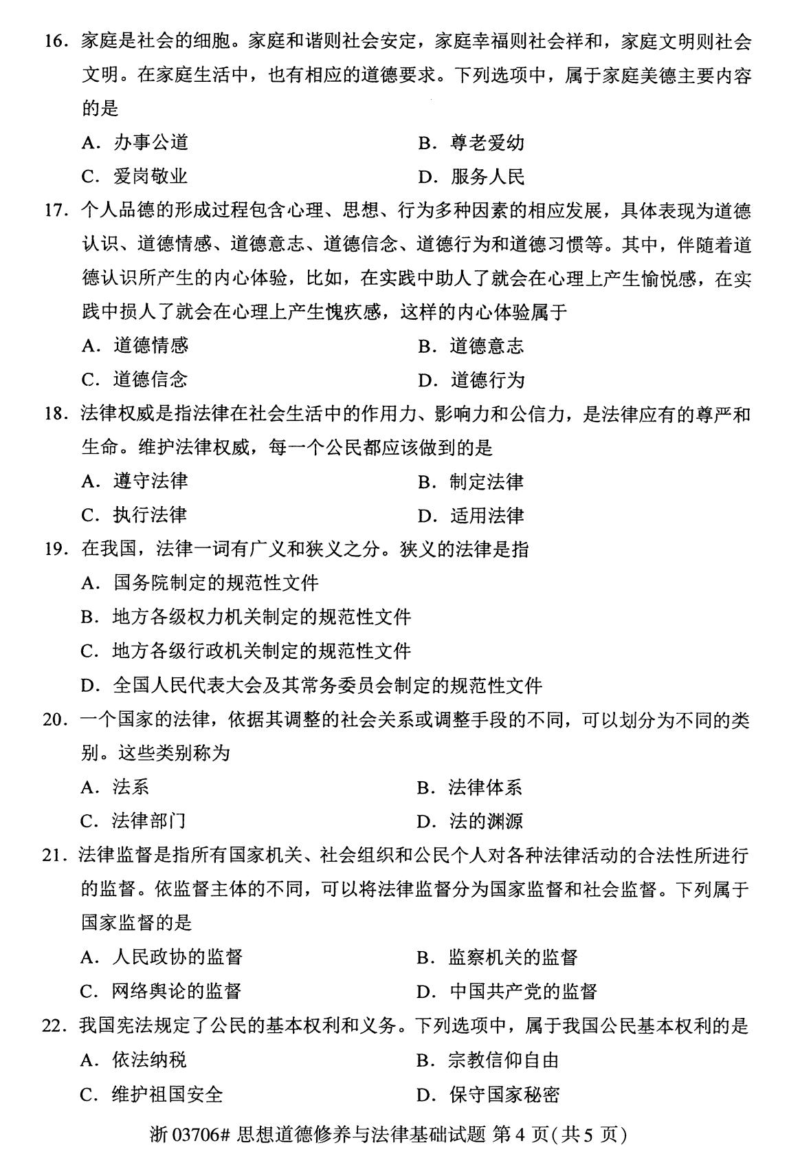 • 所在位置:浙江自考网 > 自考试卷 > 全国2020年8月自学考试03706思想道德修养与法律基础试题