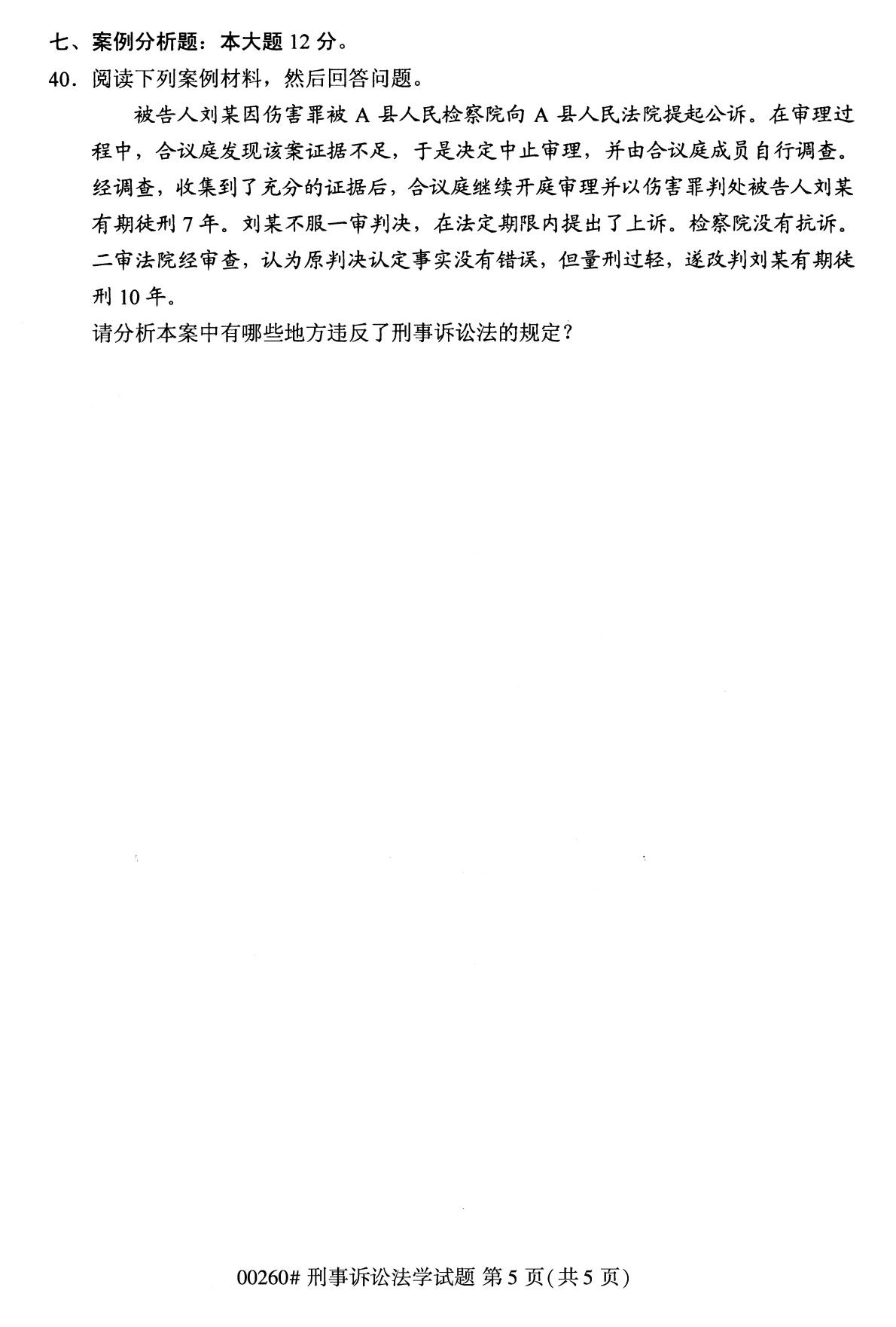 • 所在位置:浙江自考网 > 自考试卷 > 全国2020年10月自学考试00260刑事诉讼法学试题