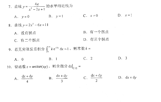 以下内容由浙江自考网整理,本文内容是全国2021年4月自考00020高等数学(一)真题试卷,希望可以给正在自考的你带来帮助,如果你还有自考方面的疑问,加入考生交流群一起探讨。