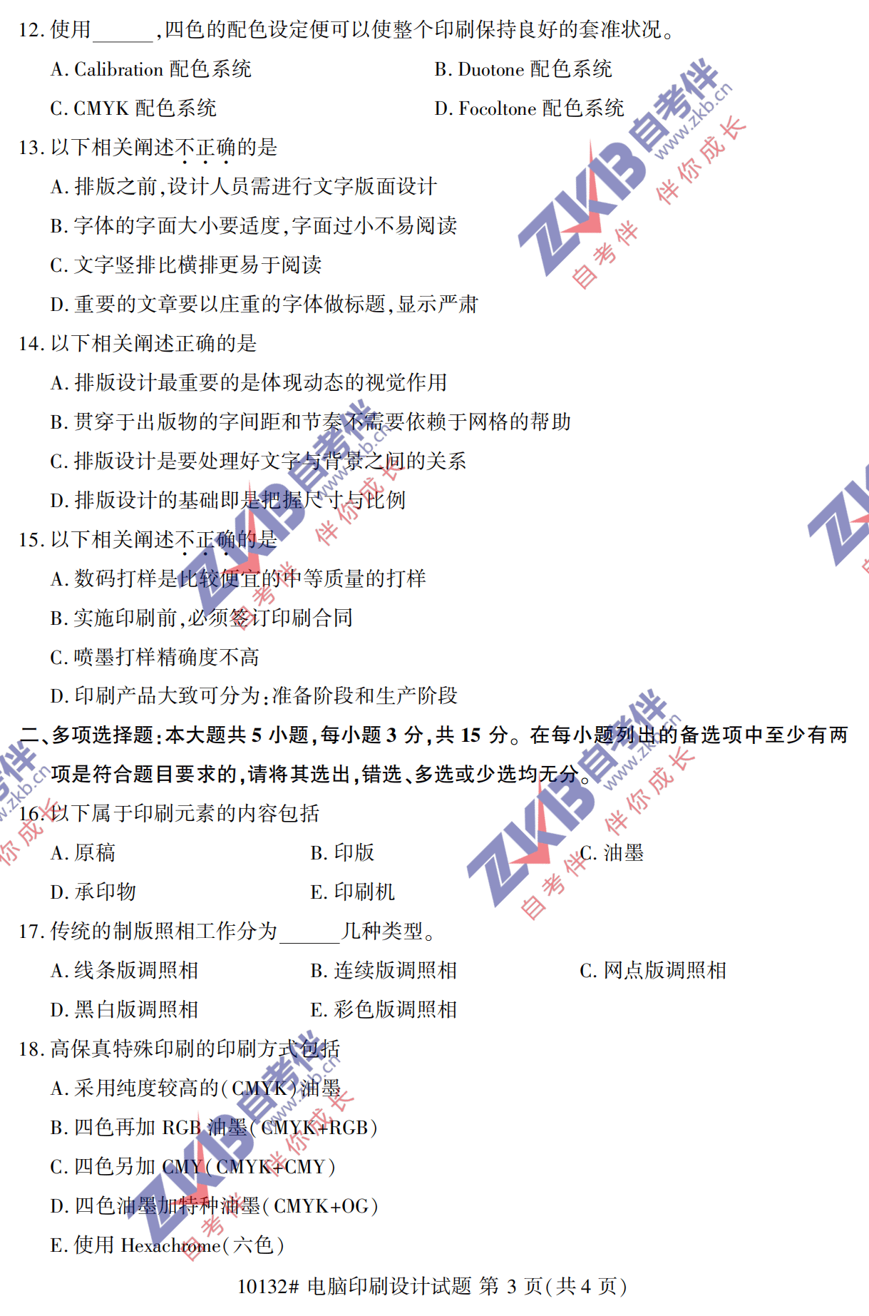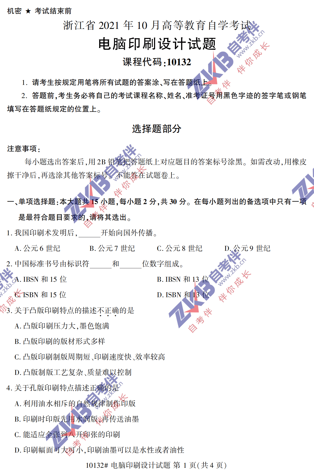 • 所在位置:浙江自考网 > 自考试卷 > 全国2021年10月自考《电脑印刷设计》真题试卷