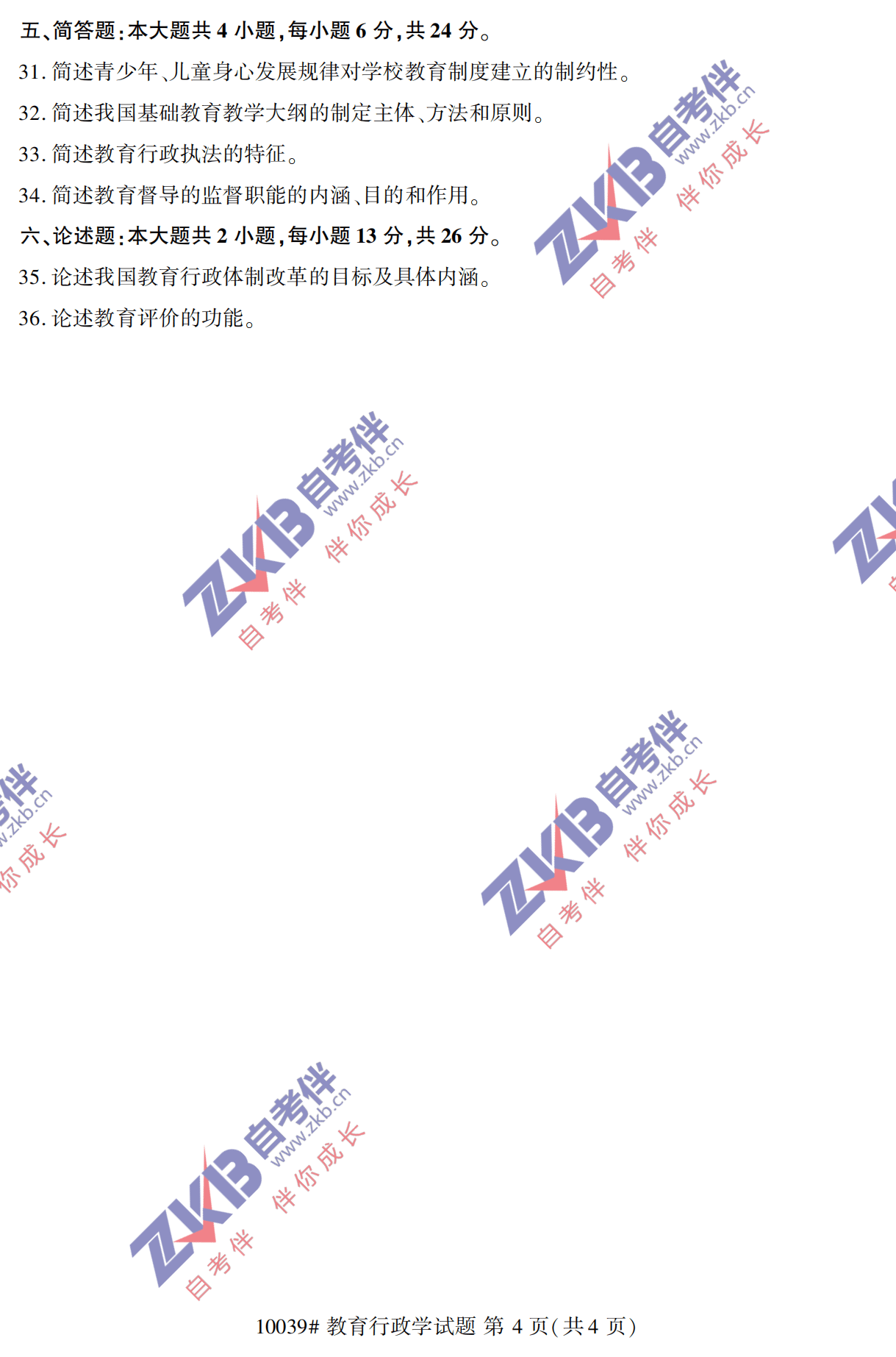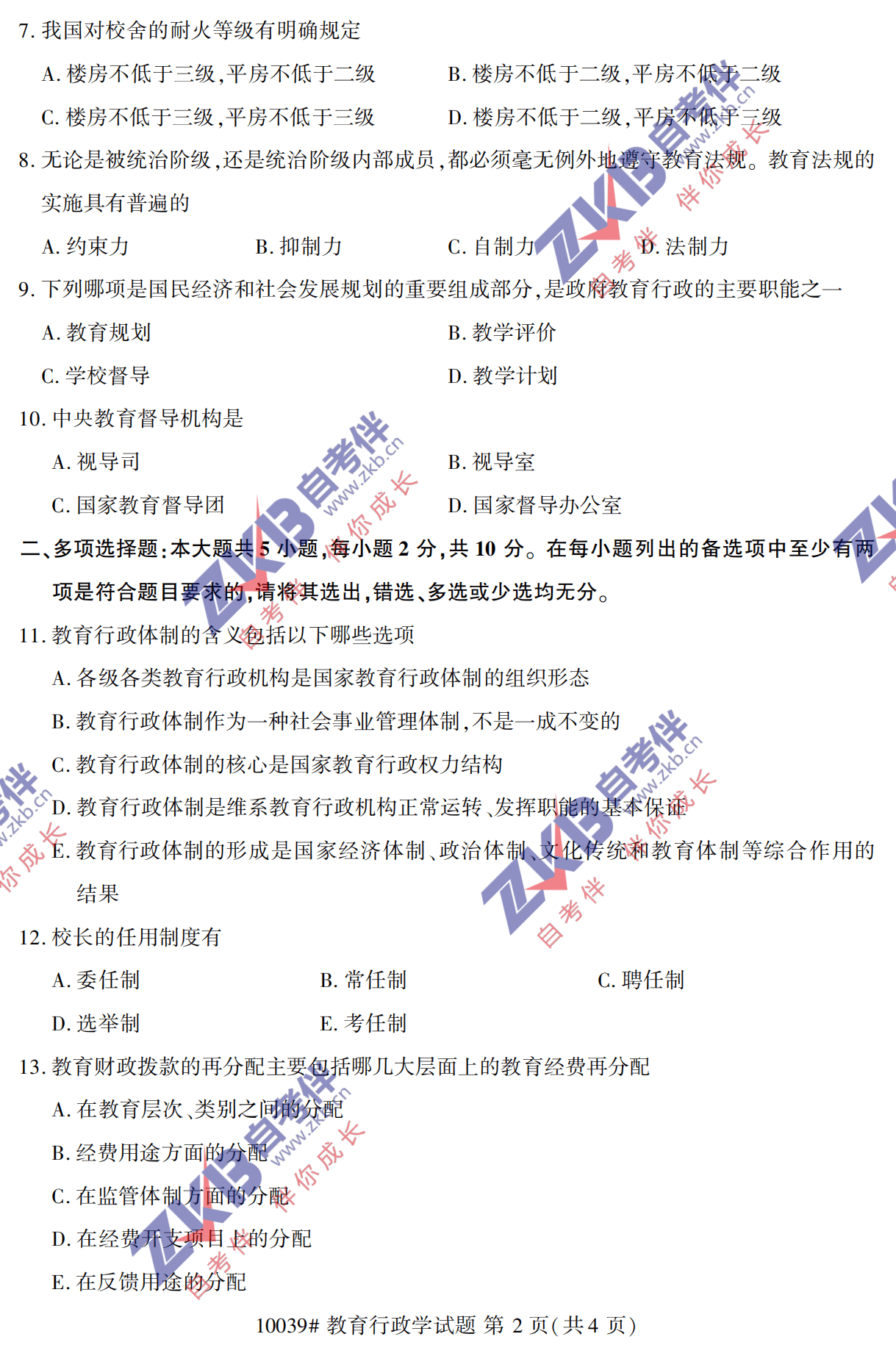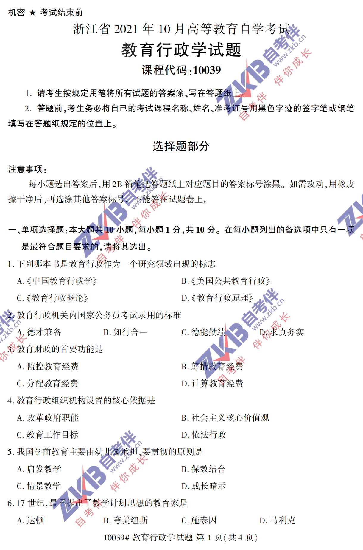 • 所在位置:浙江自考网 > 自考试卷 > 全国2021年10月《教育行政学》真题试卷