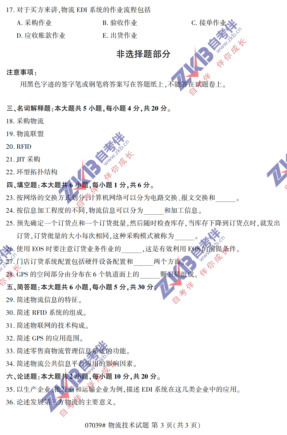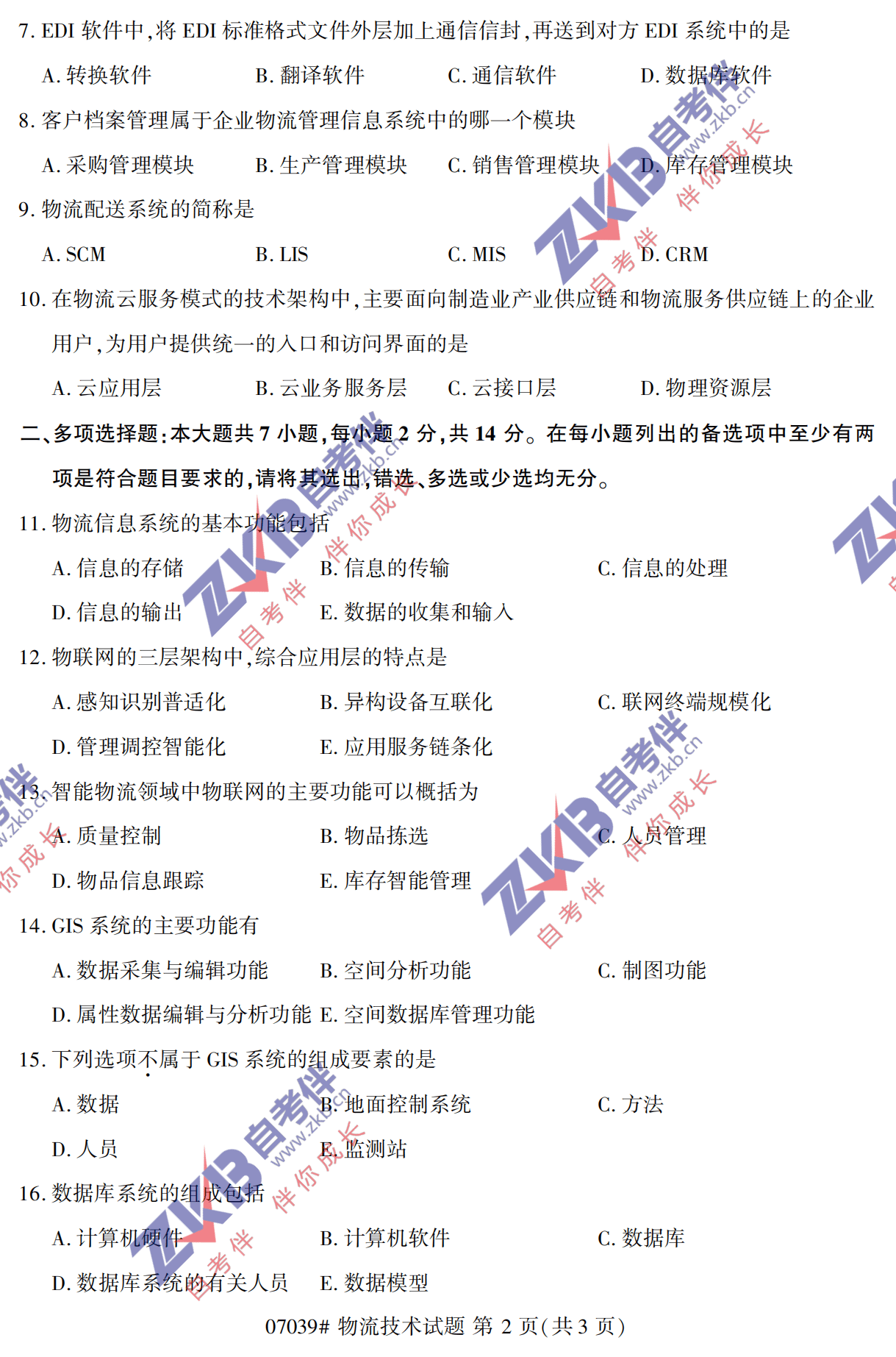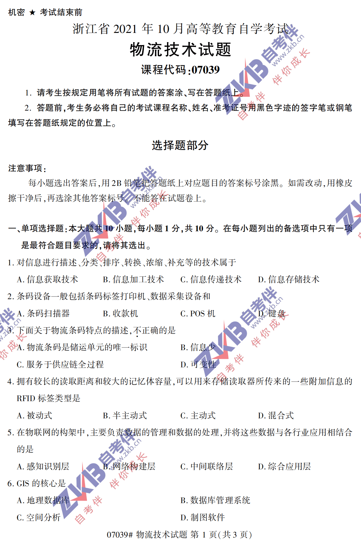 • 所在位置:浙江自考网 > 自考试卷 > 全国2021年10月自考《物流技术》真题试卷