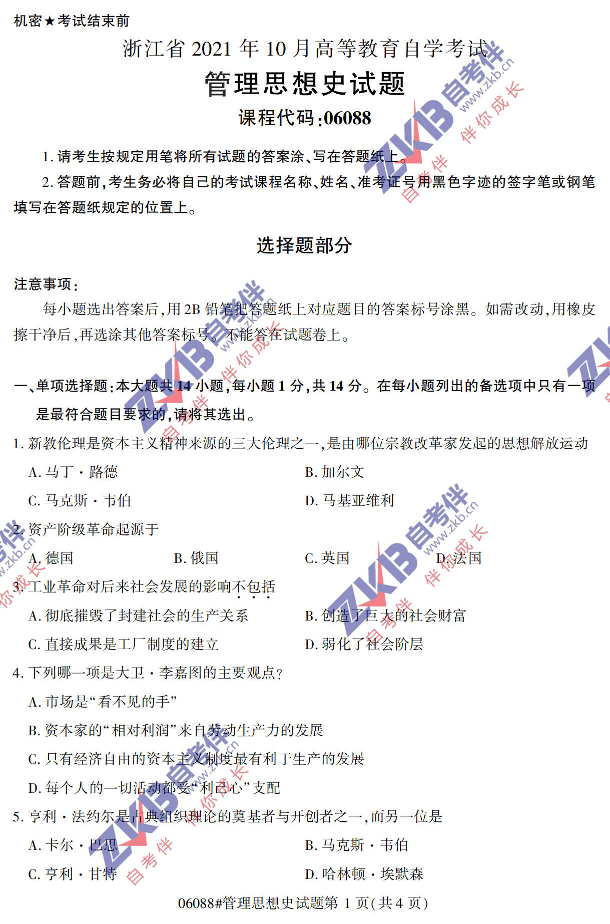 • 所在位置:浙江自考网 > 自考试卷 > 全国2021年10月自考《管理思想史》真题试卷