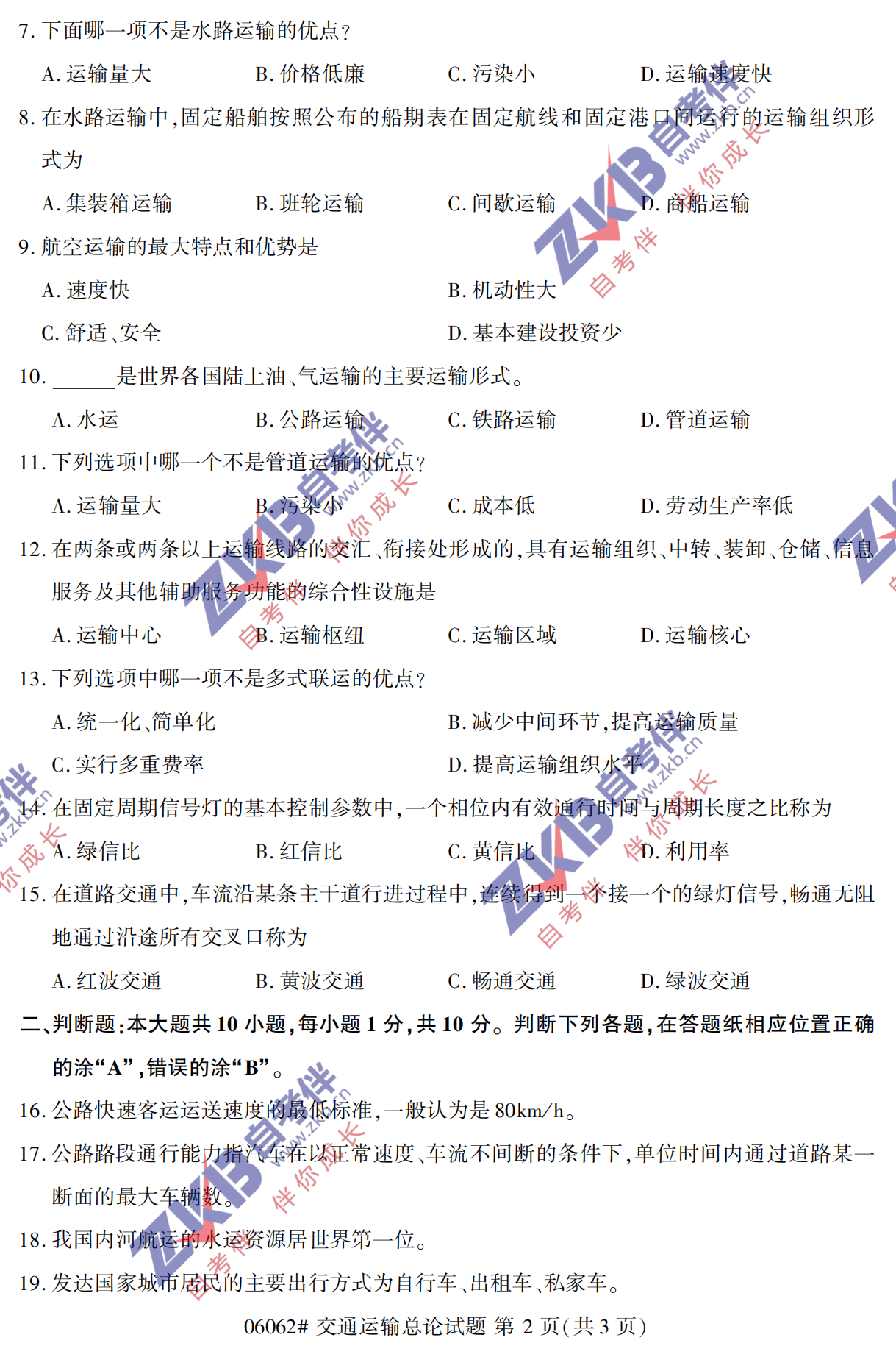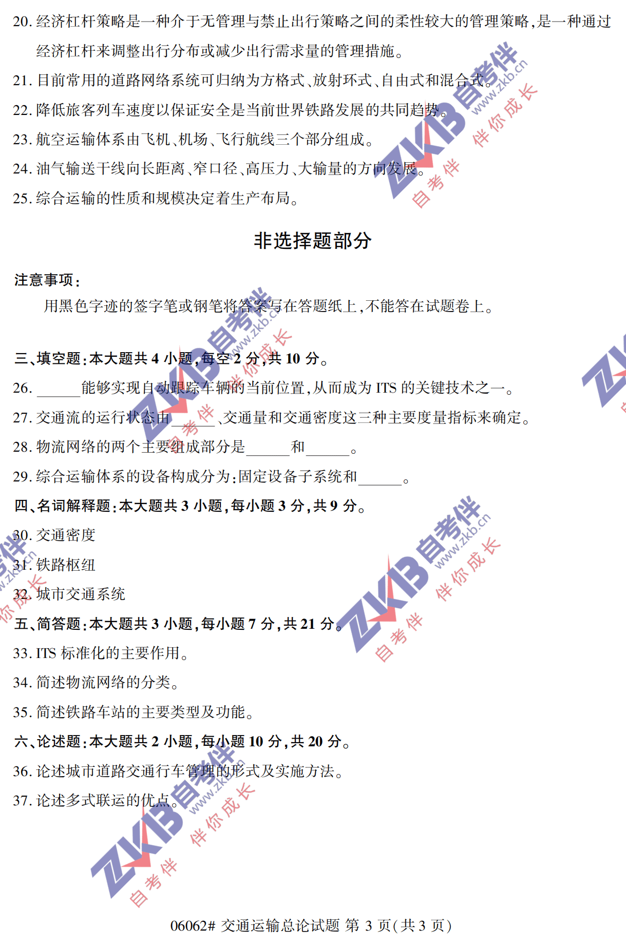 • 所在位置:浙江自考网 > 自考试卷 > 全国2021年10月自考《交通运输总论》真题试卷