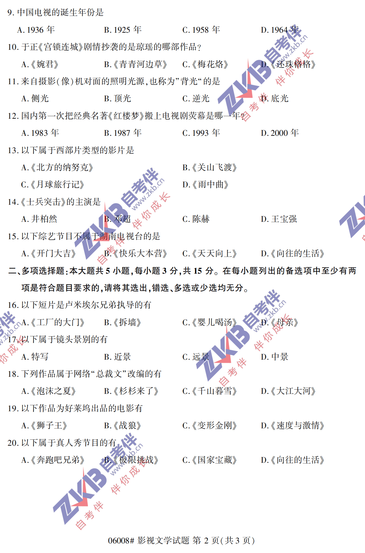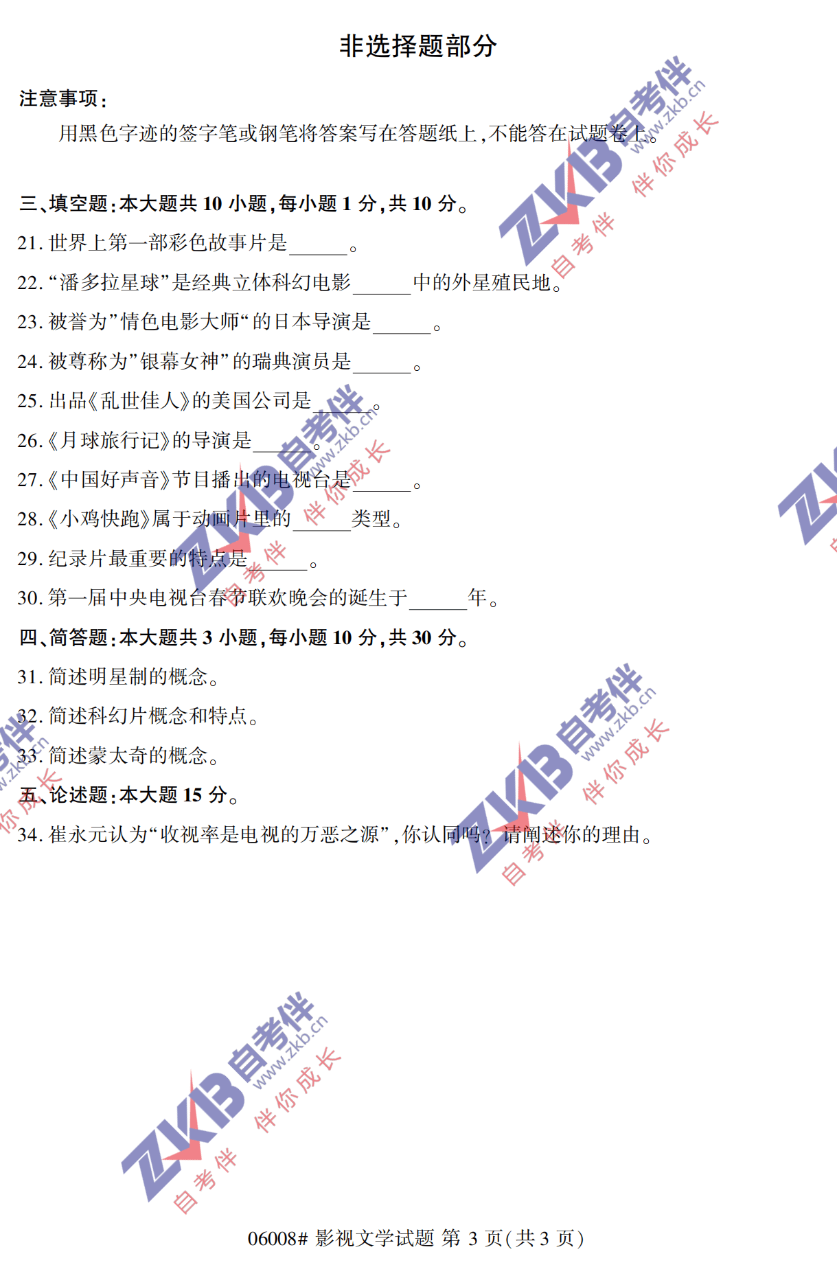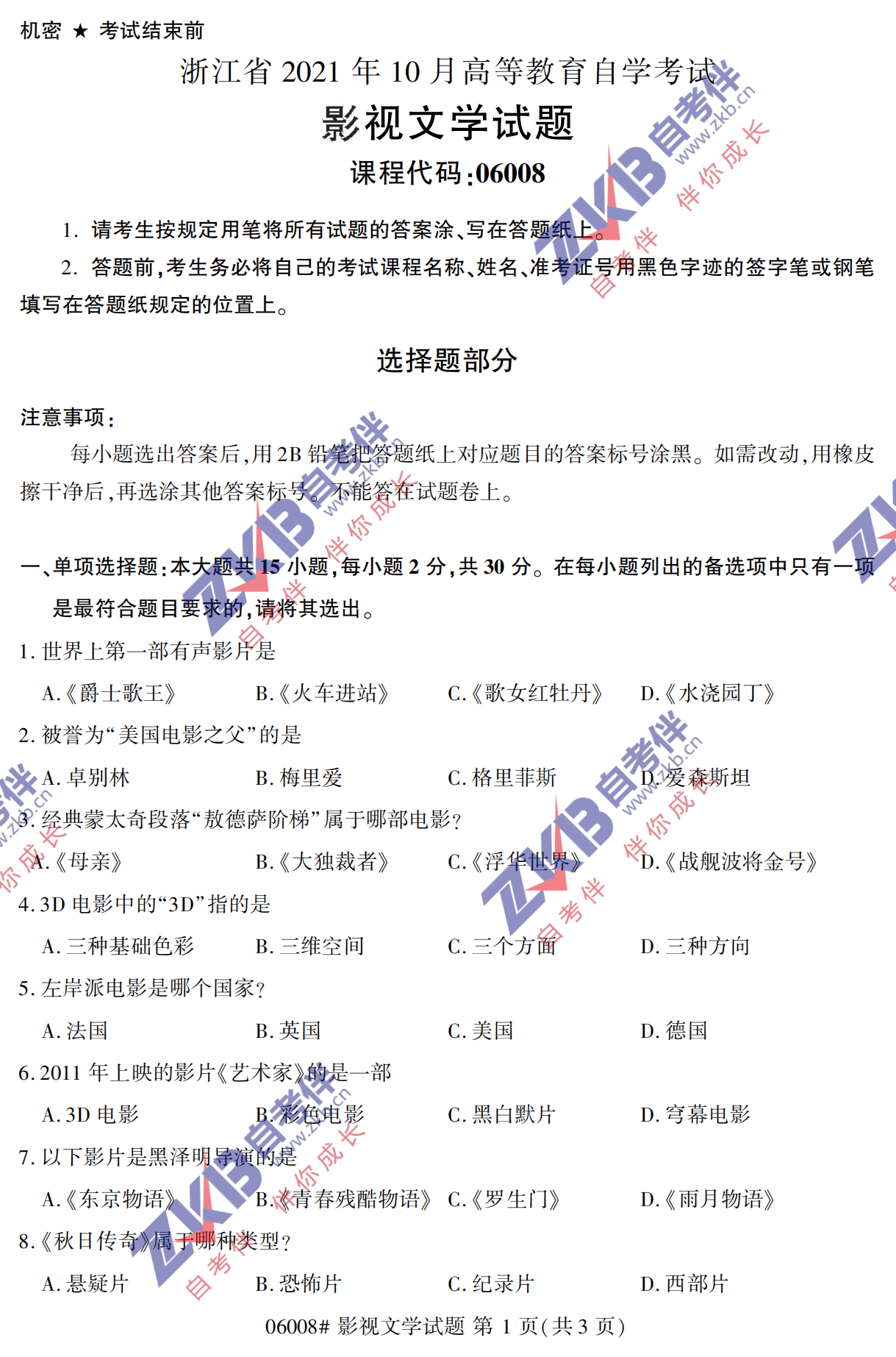 • 所在位置:浙江自考网 > 自考试卷 > 全国2021年10月自考《影视文学》真题试卷