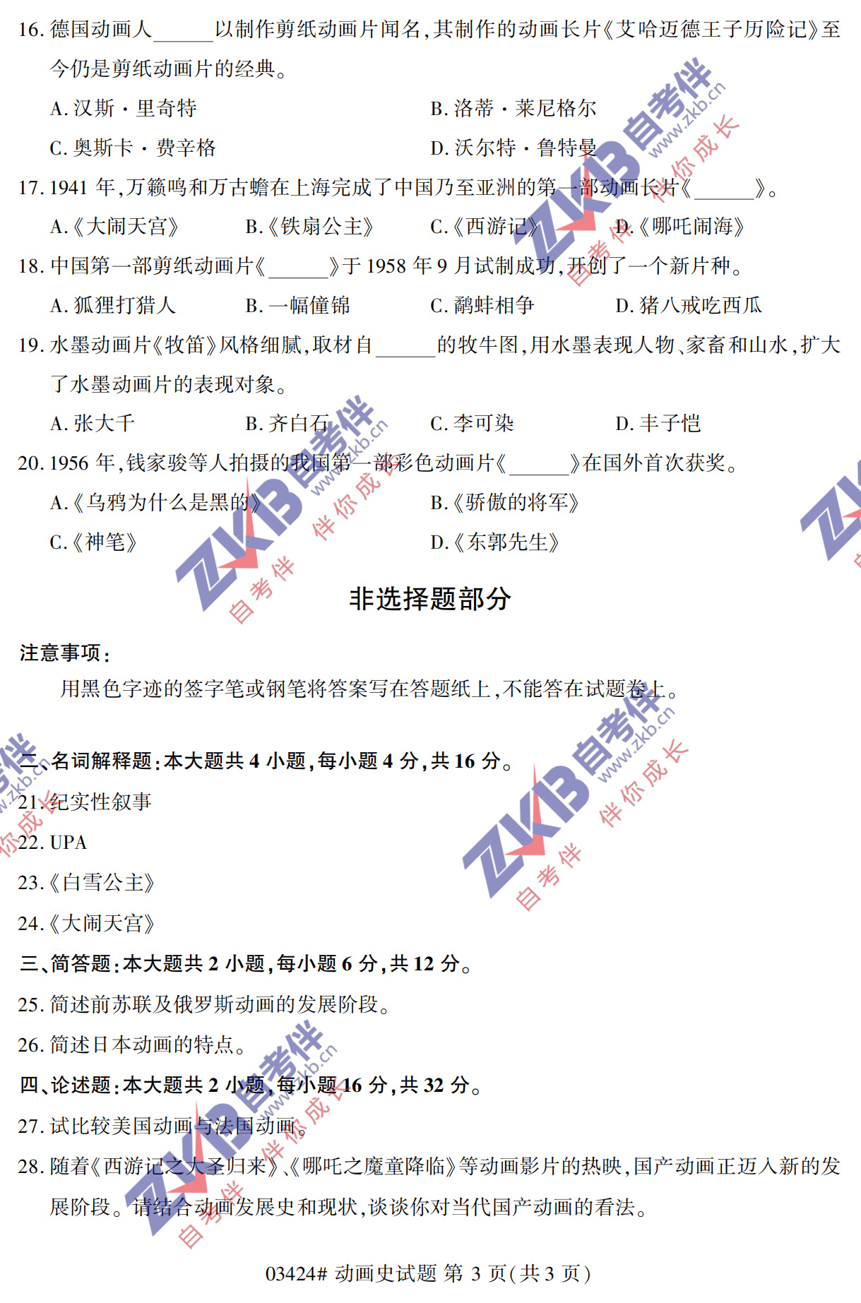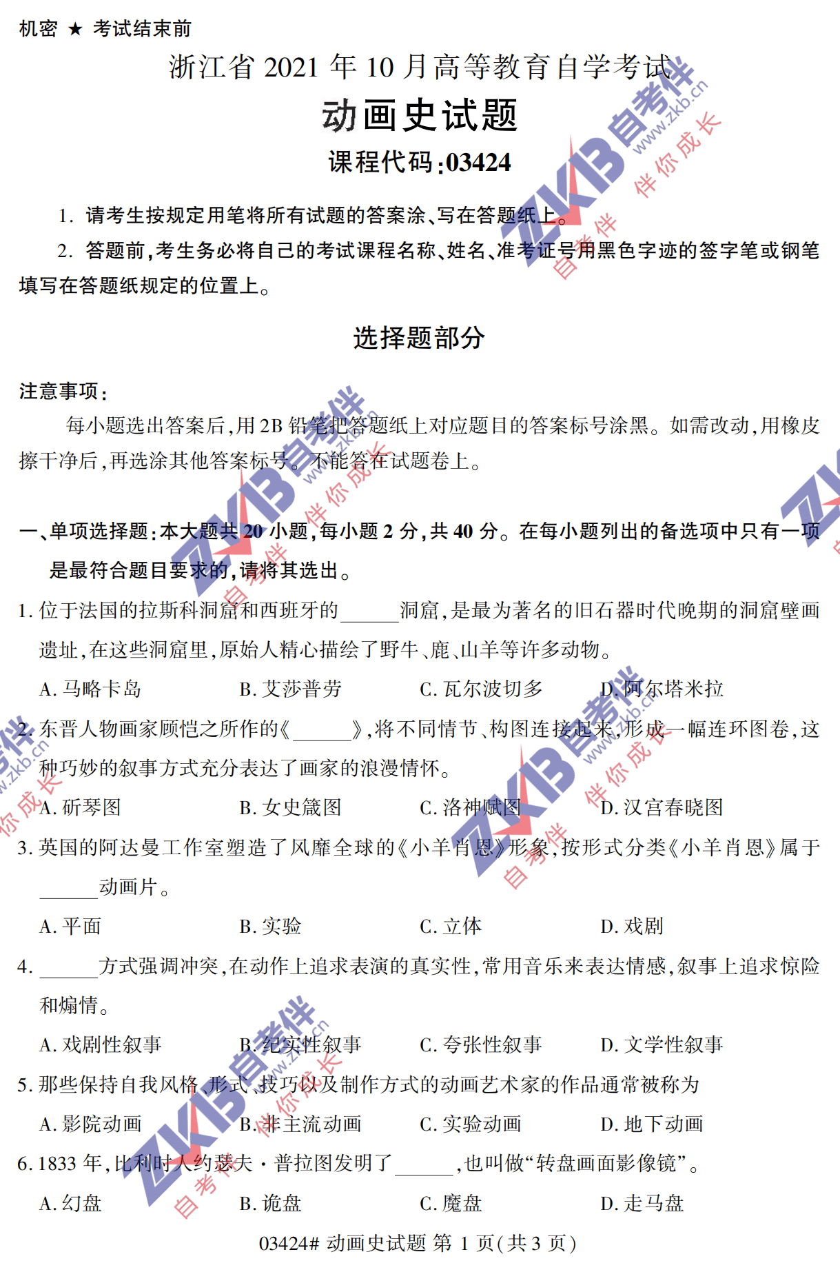 全国2021年10月自考《动画史》真题试卷