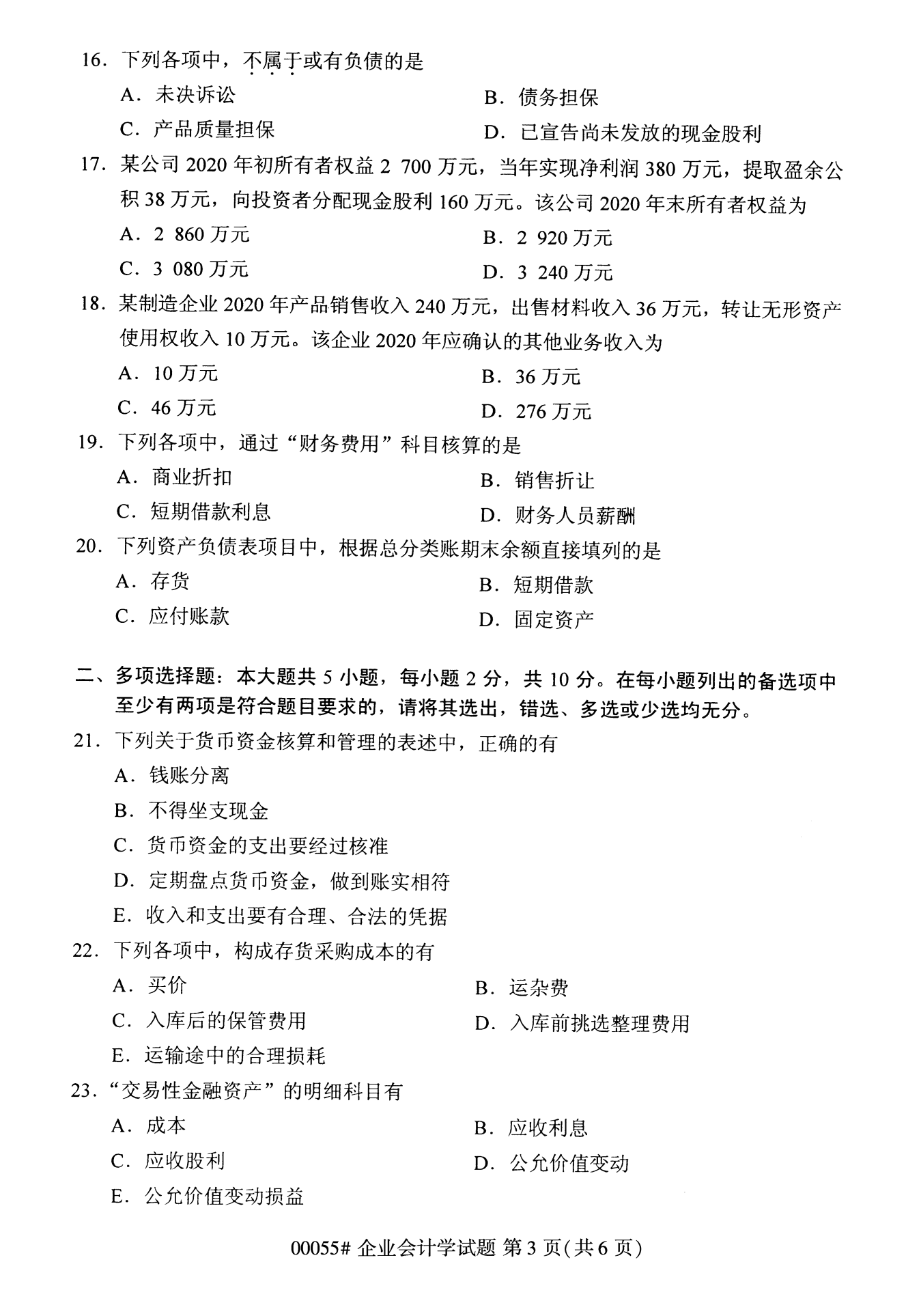 - 2024年10月浙江自考00067财务管理学试题 12-20
