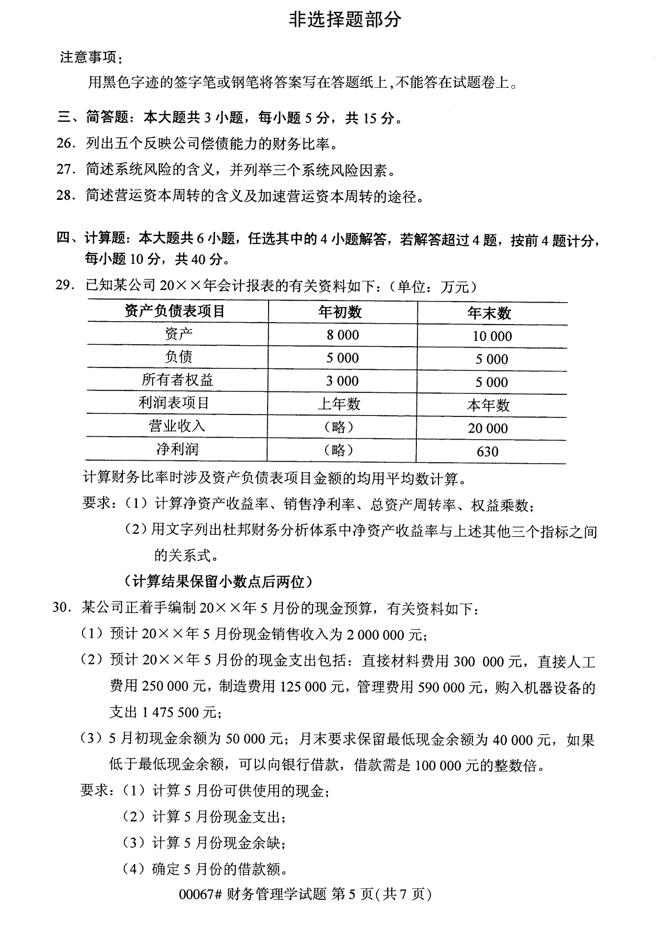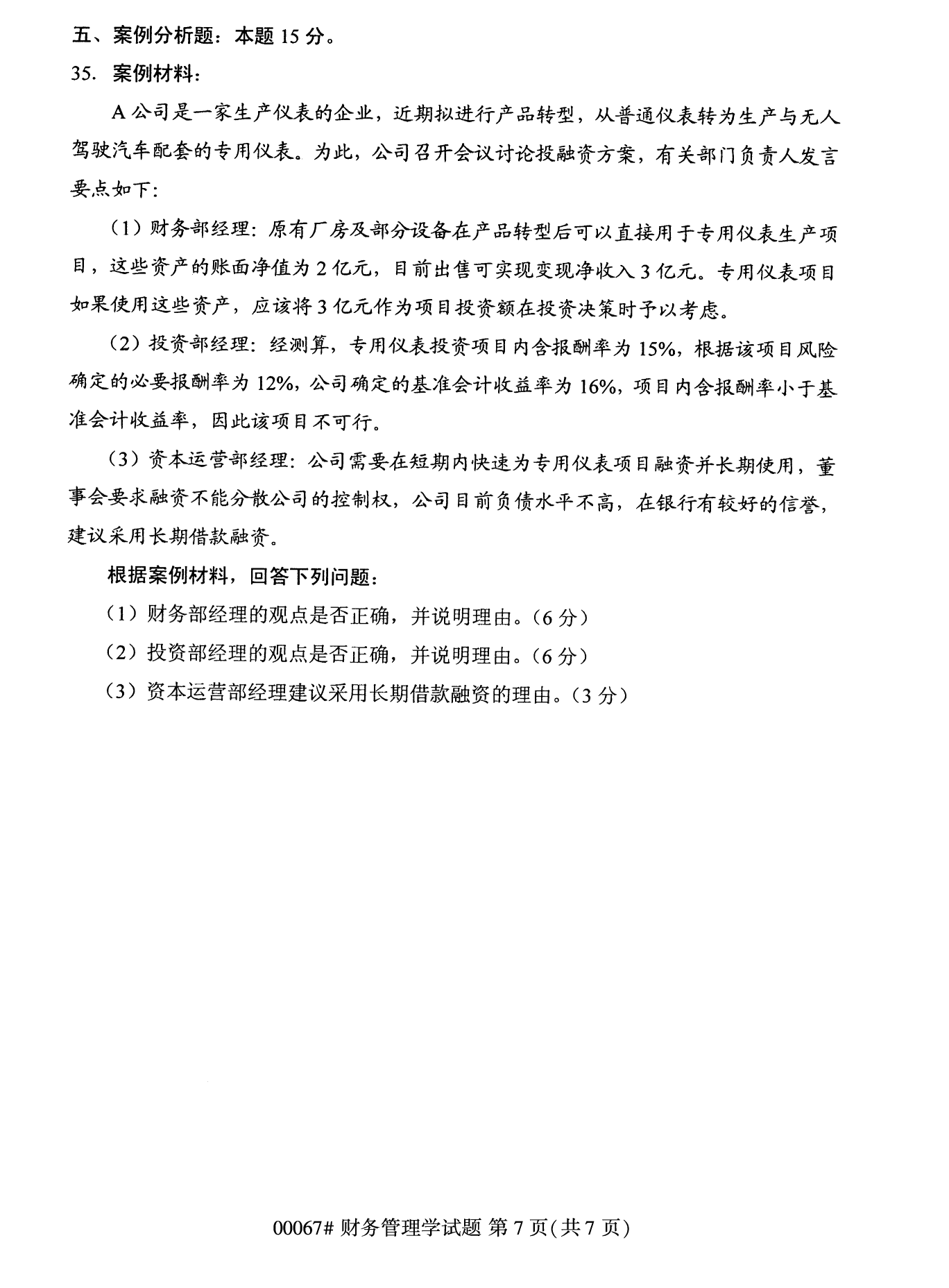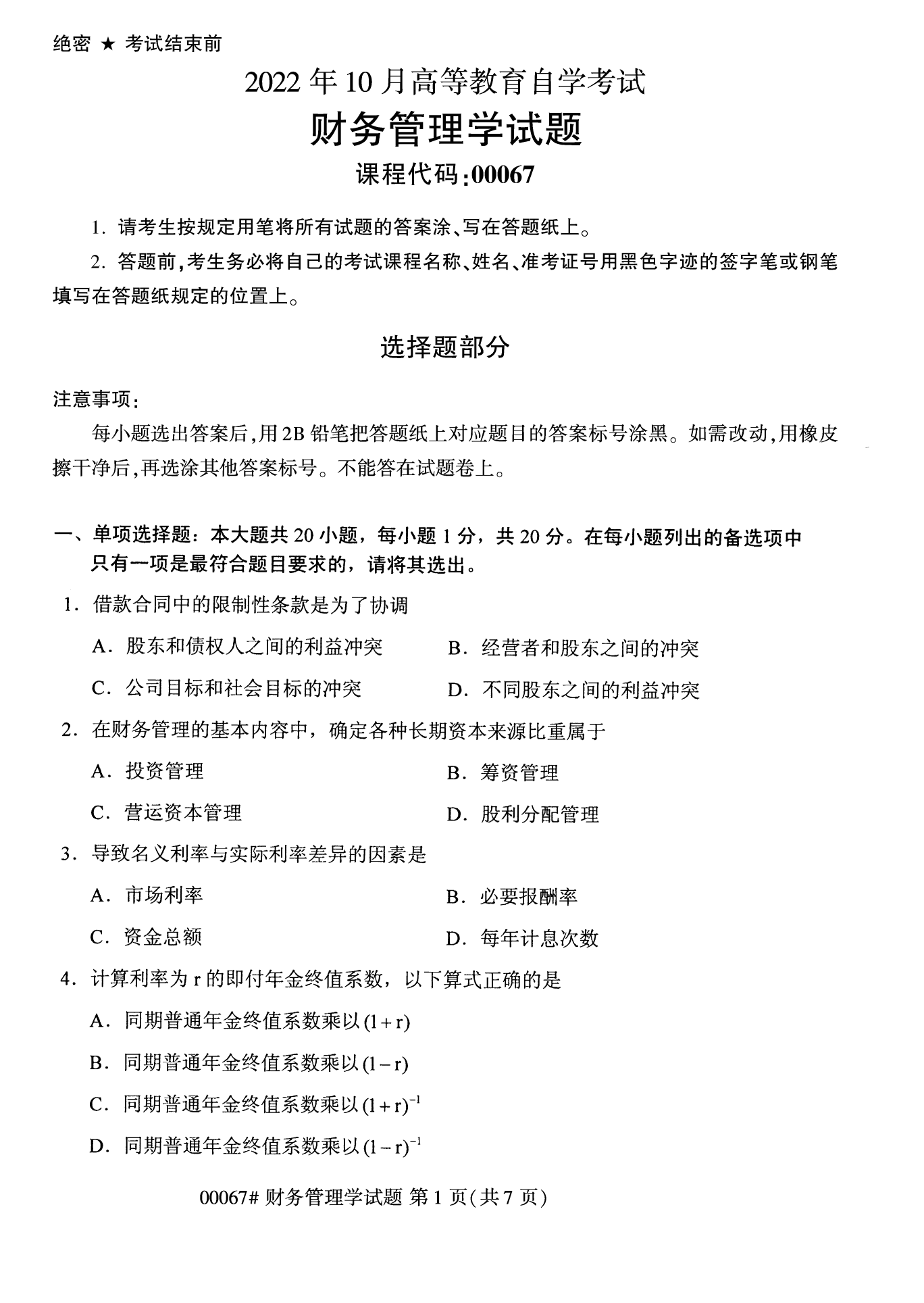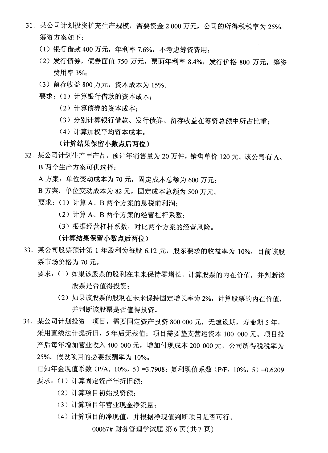 - 2024年10月浙江自考00067财务管理学试题 12-20