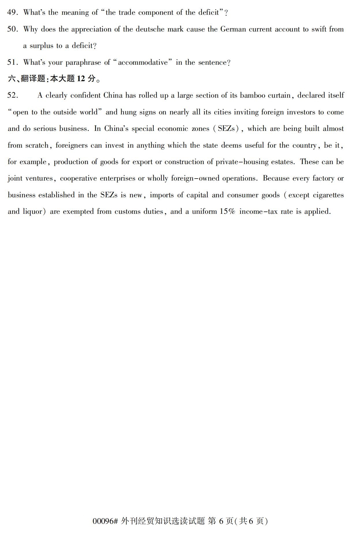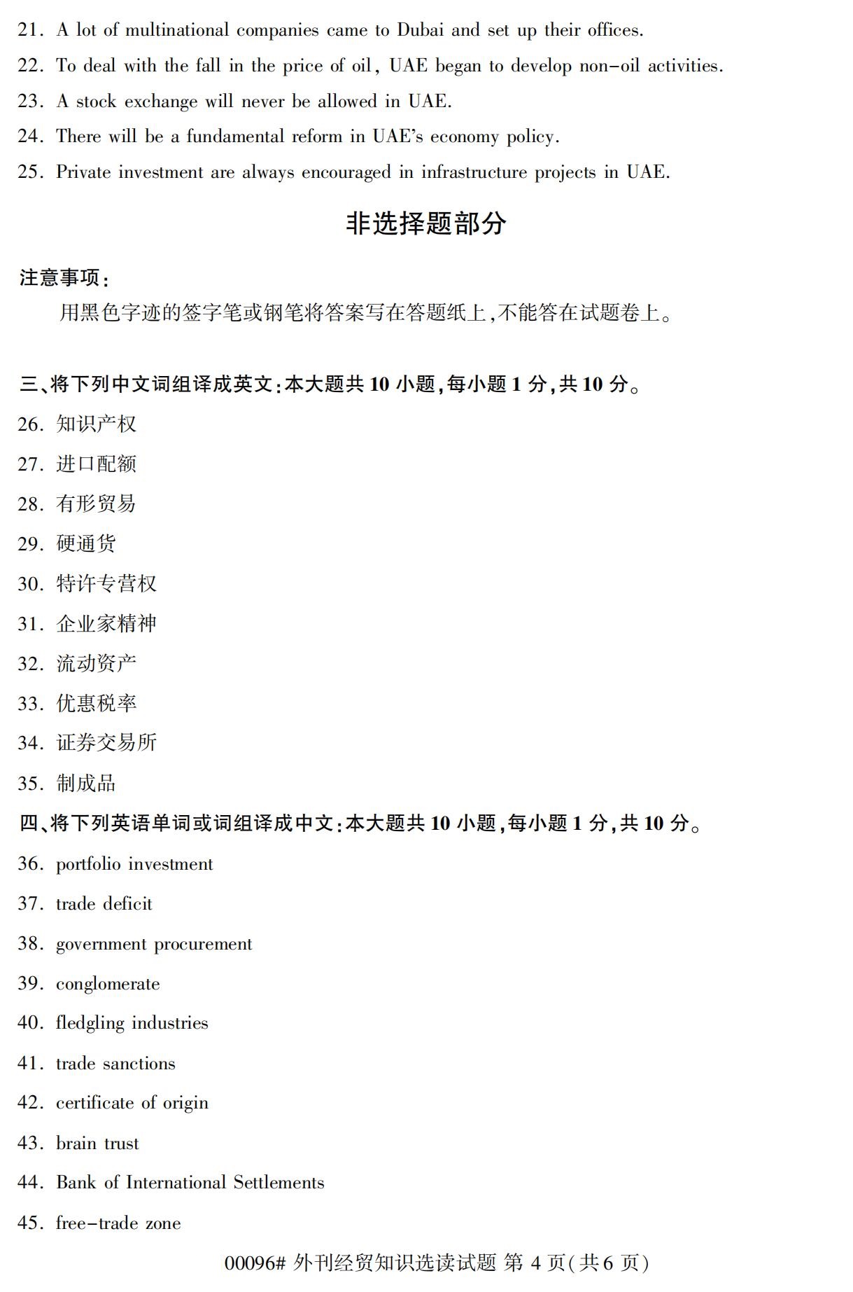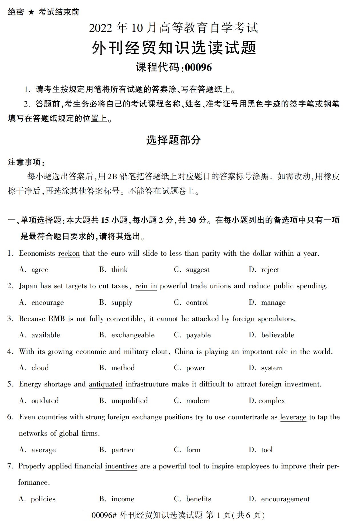 2022年10月浙江自考00096外刊经贸知识选读试题