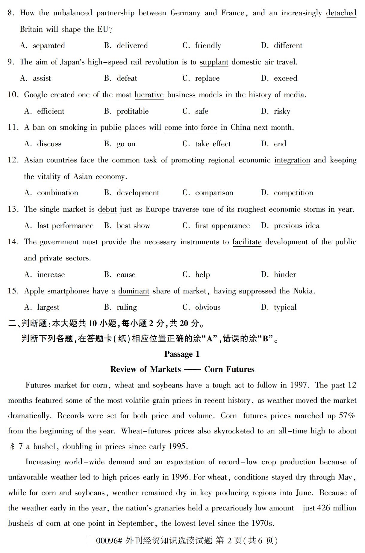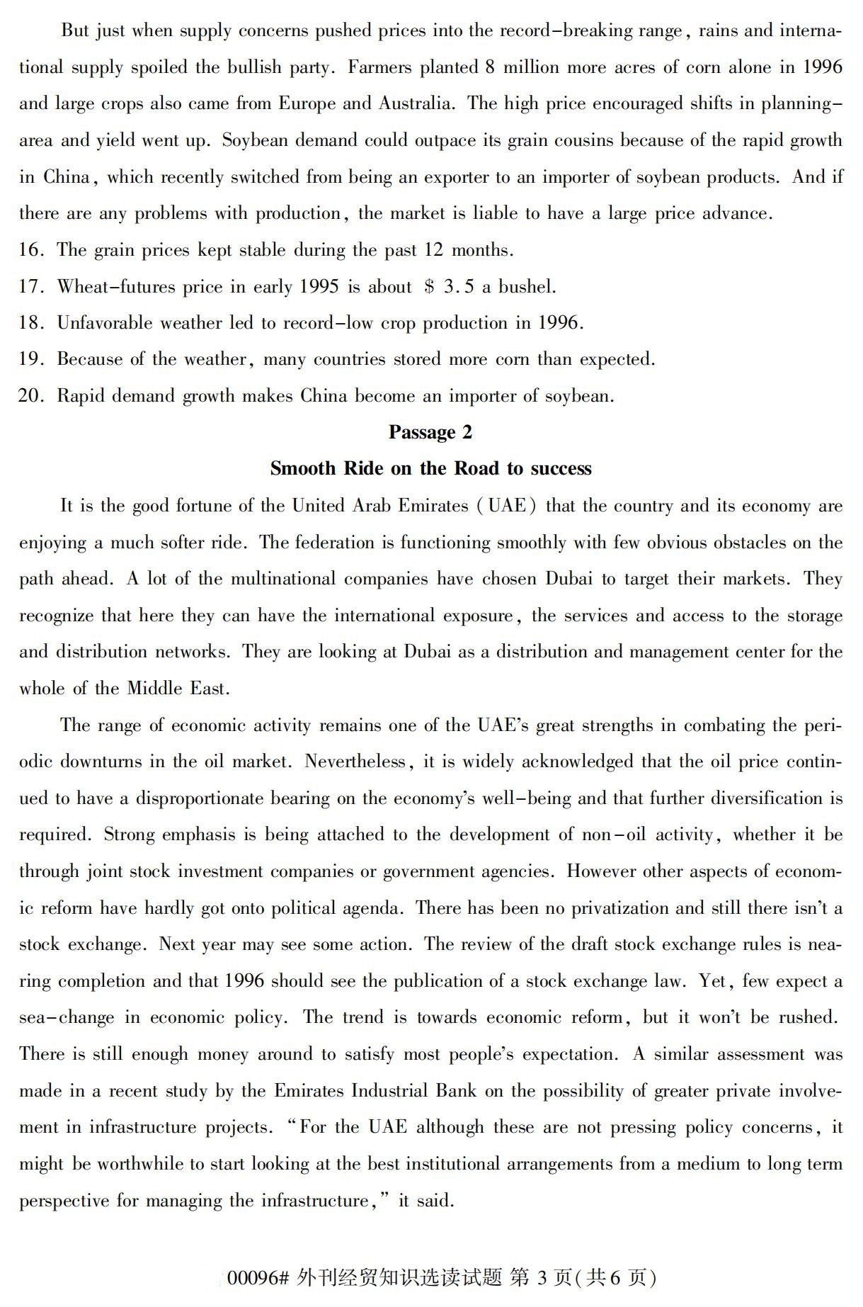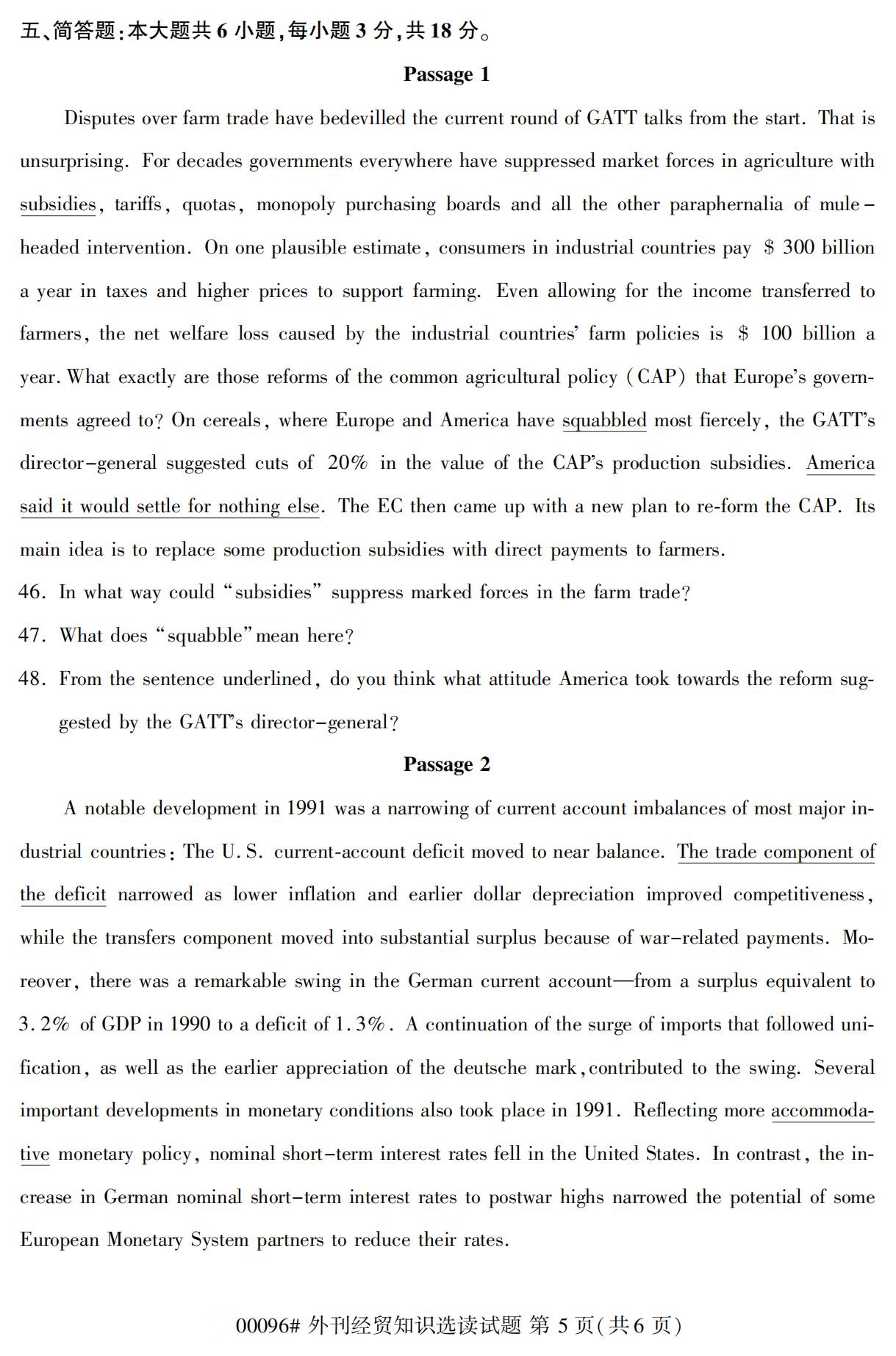 2022年10月浙江自考00096外刊经贸知识选读试题
