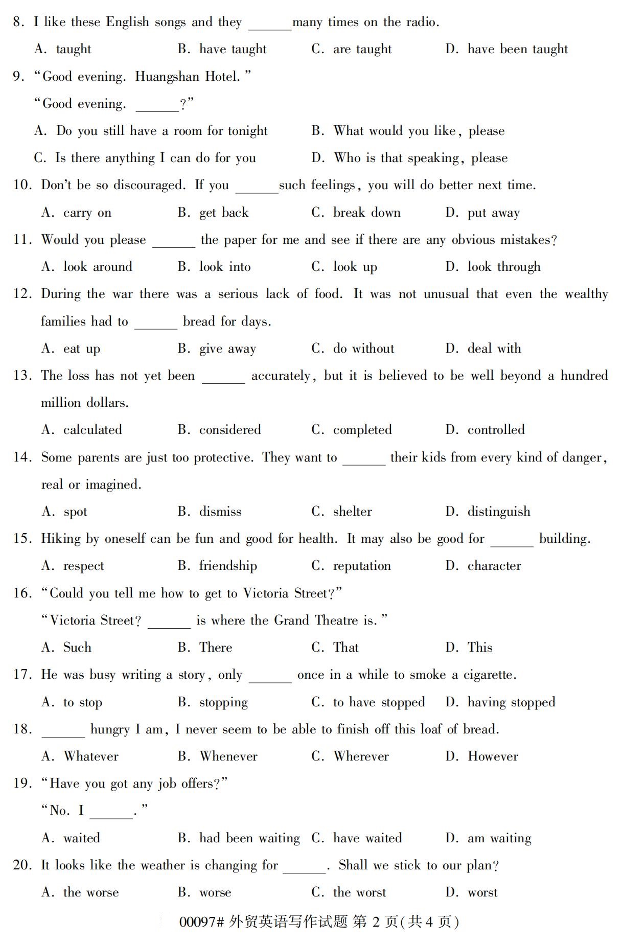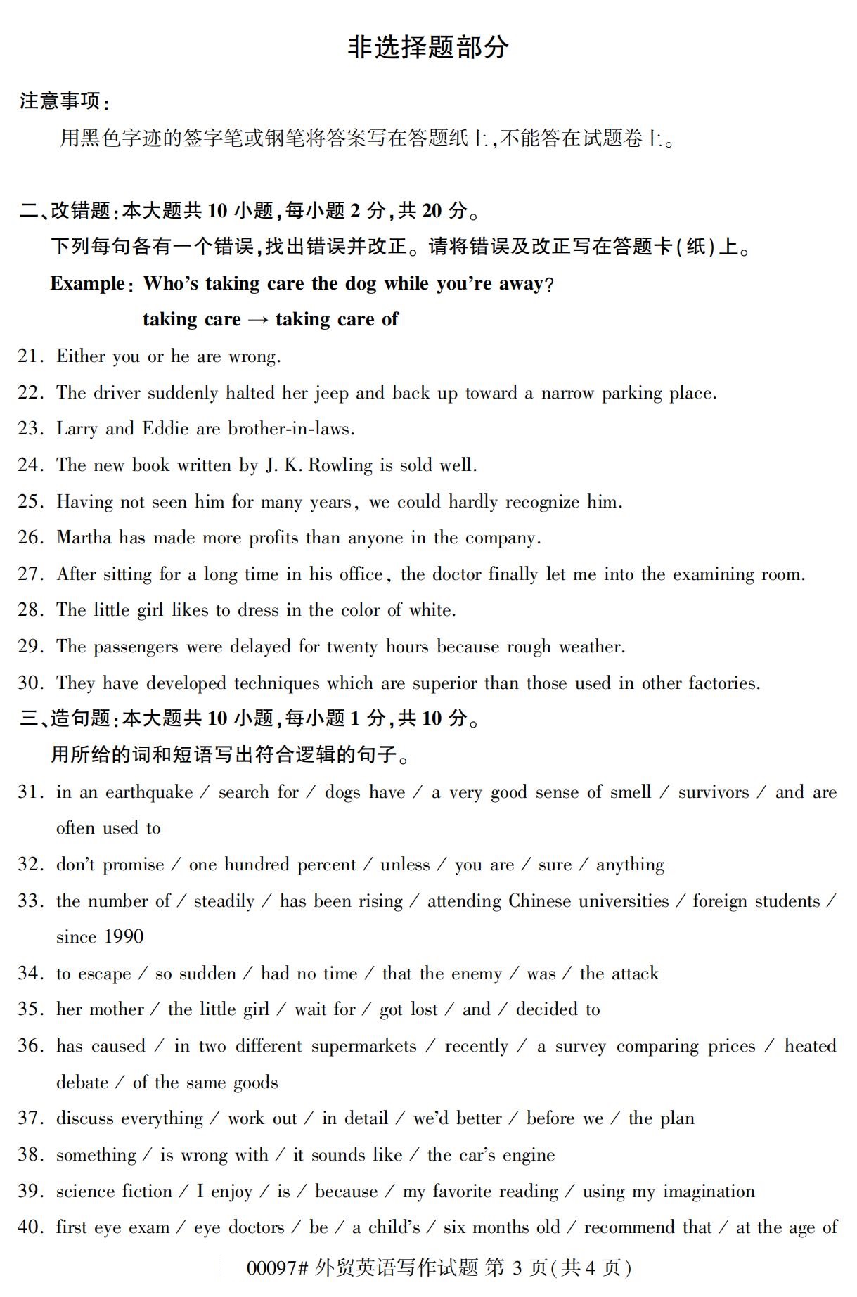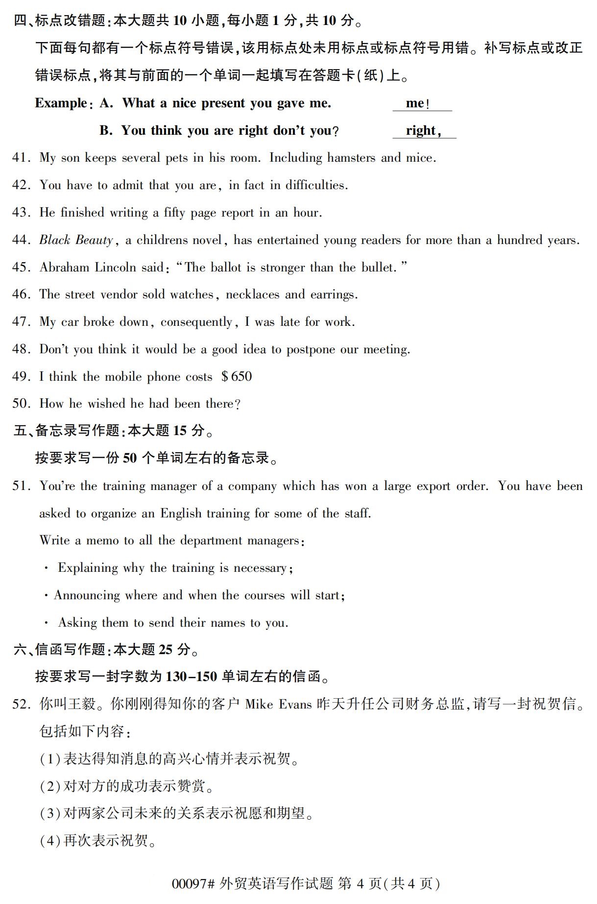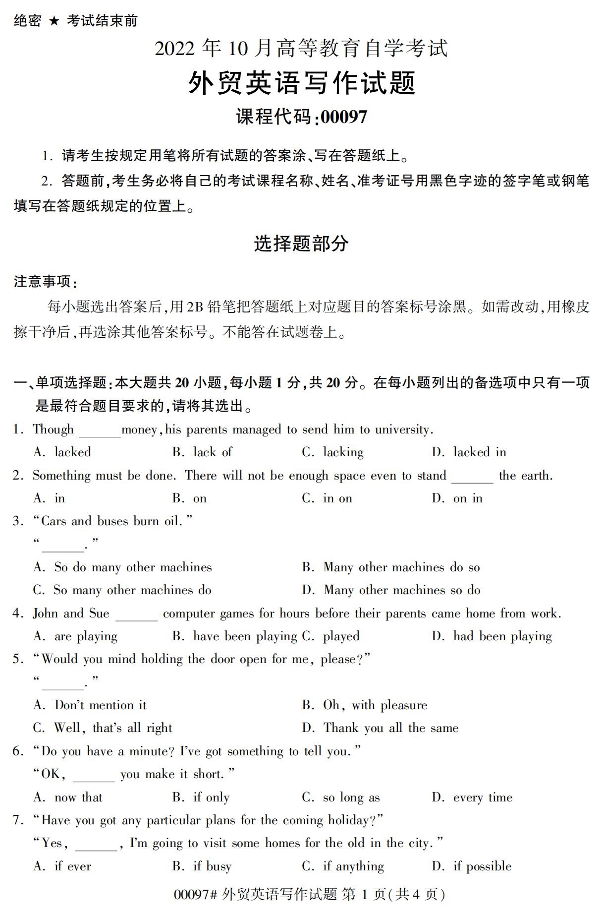 以上就是“2022年10月浙江自考00097外贸英语写作试题”的全部内容,关注浙江自考网,我们将持续为您推送有关浙江自考复习备考、自考资讯、相关政策等信息,自考报名流程和考试注意事项不懂的,想了解自考动态的,或者是自考信息不懂的考生,可添加【浙江自考交流群】了解更多。