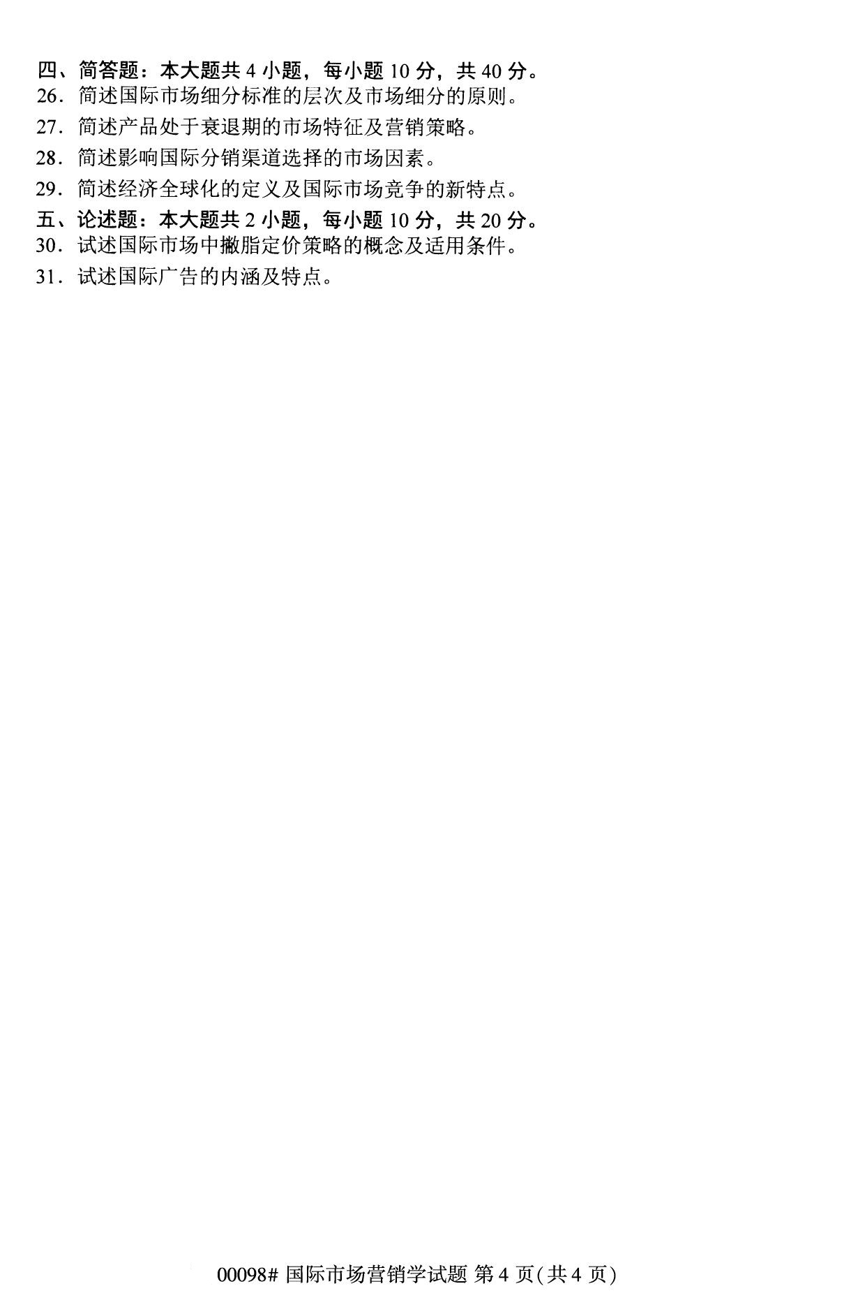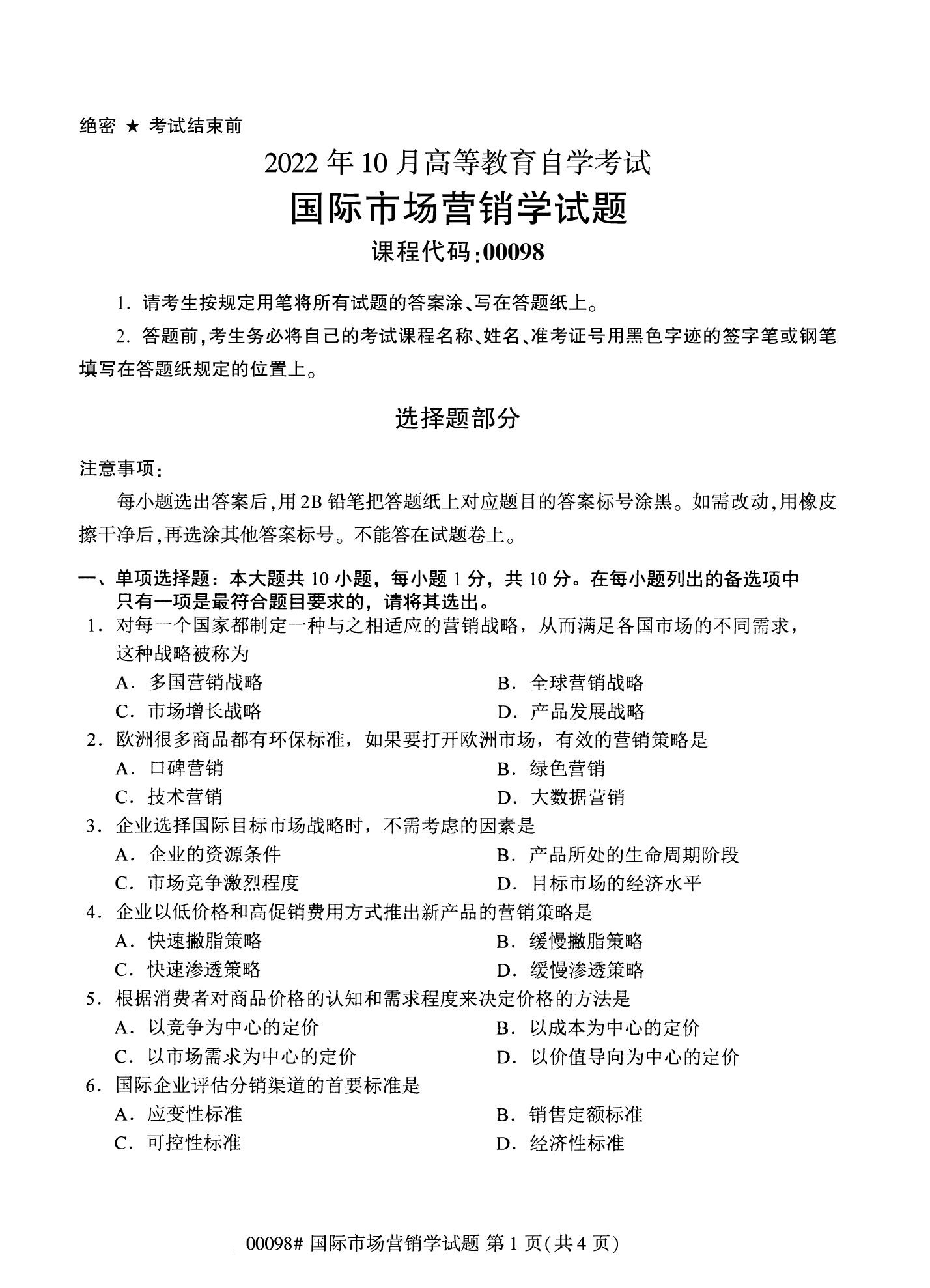 以上就是“2022年10月浙江自考00098国际市场营销学试题”的全部内容,关注浙江自考网,我们将持续为您推送有关浙江自考复习备考、自考资讯、相关政策等信息,自考报名流程和考试注意事项不懂的,想了解自考动态的,或者是自考信息不懂的考生,可添加【浙江自考交流群】了解更多。