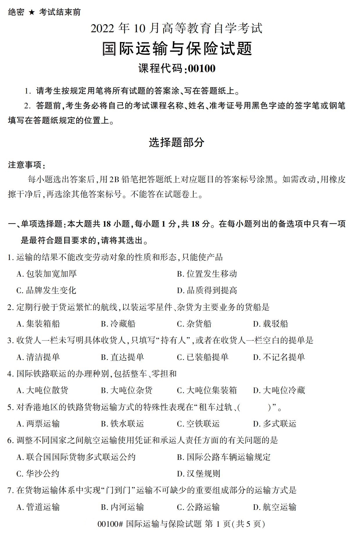 以上就是“2022年10月浙江自考00100国际运输与保险试题”的全部内容,关注浙江自考网,我们将持续为您推送有关浙江自考复习备考、自考资讯、相关政策等信息,自考报名流程和考试注意事项不懂的,想了解自考动态的,或者是自考信息不懂的考生,可添加【浙江自考交流群】了解更多。