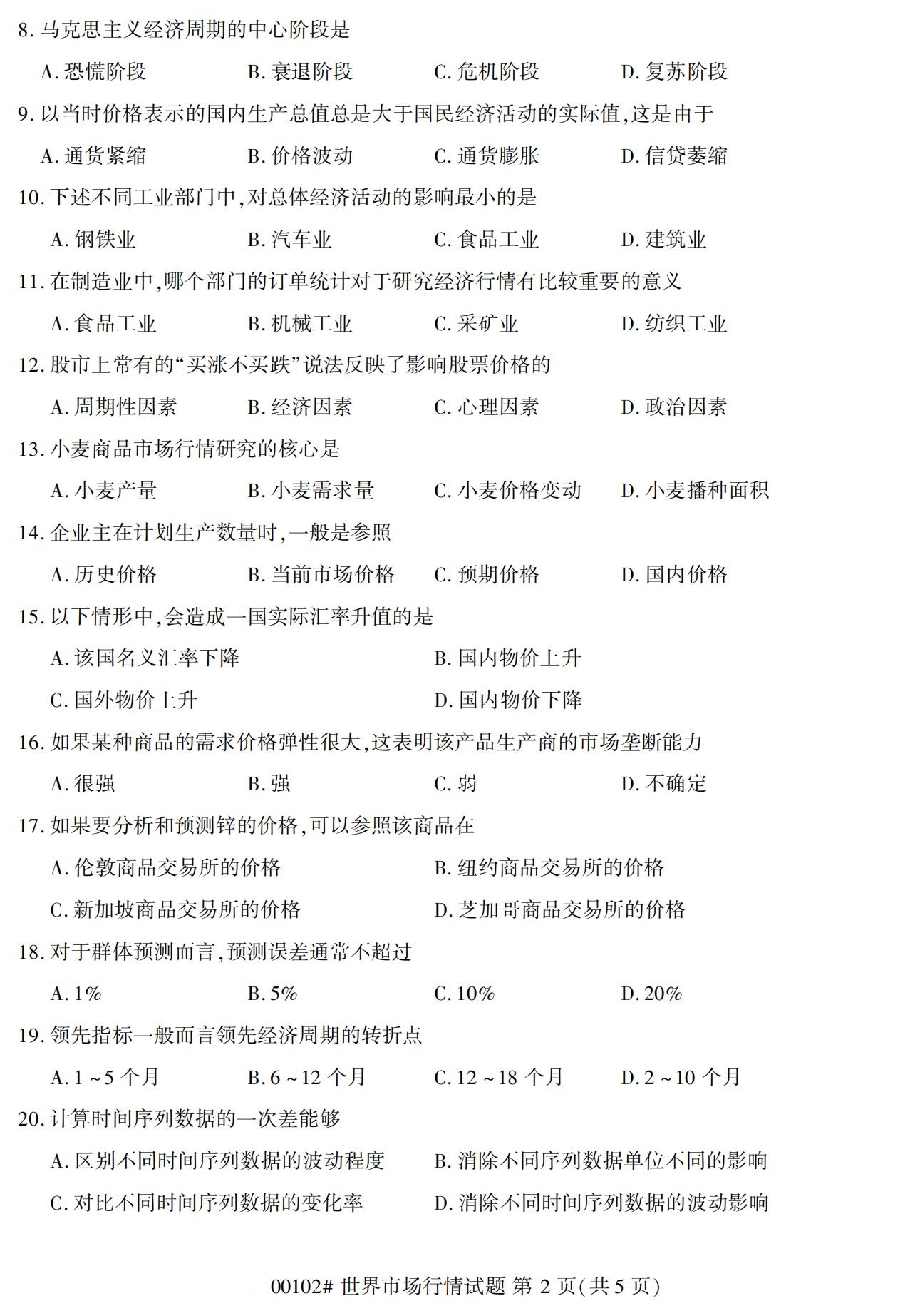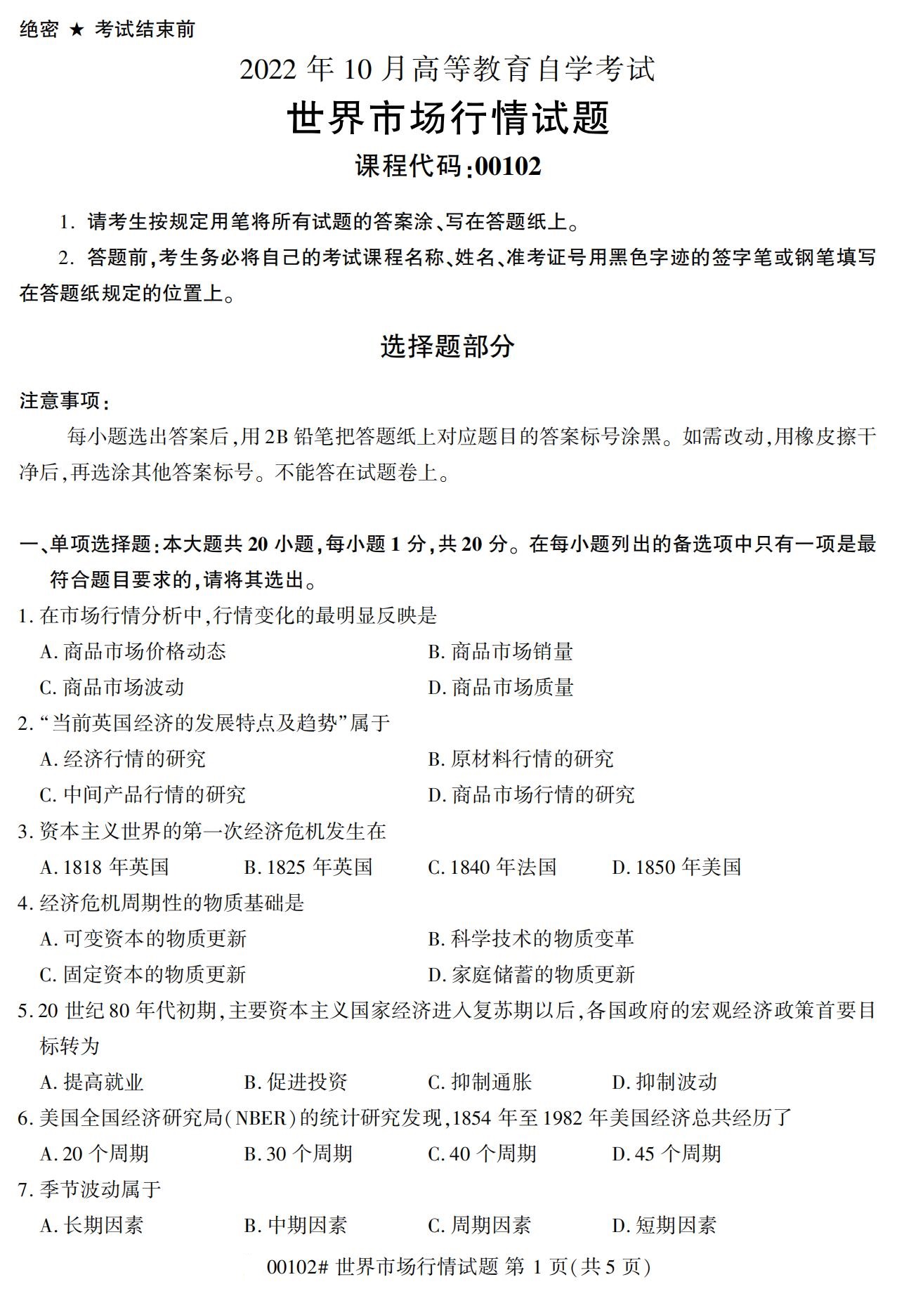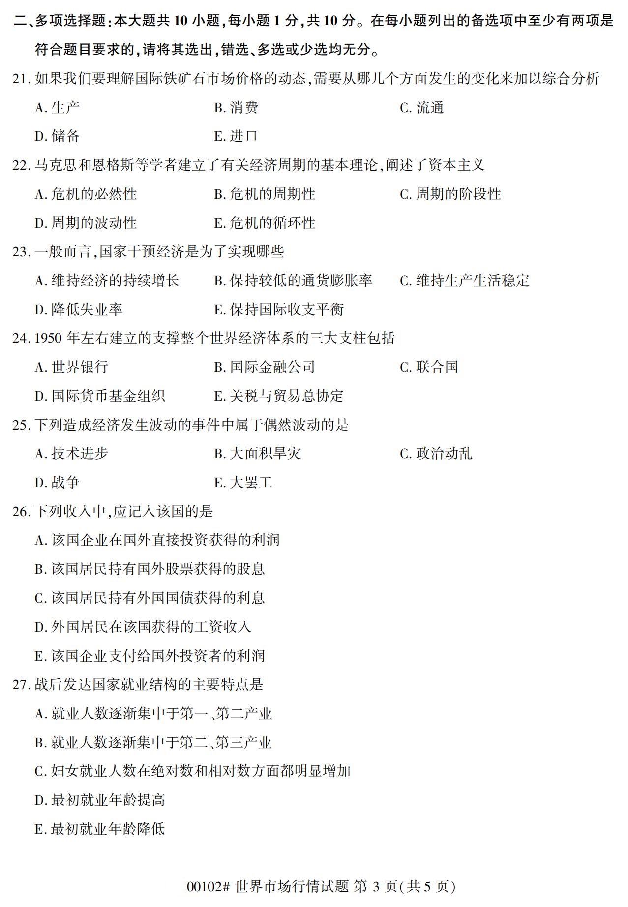 - 2024年10月浙江自考00102世界市场行情试题 12-27