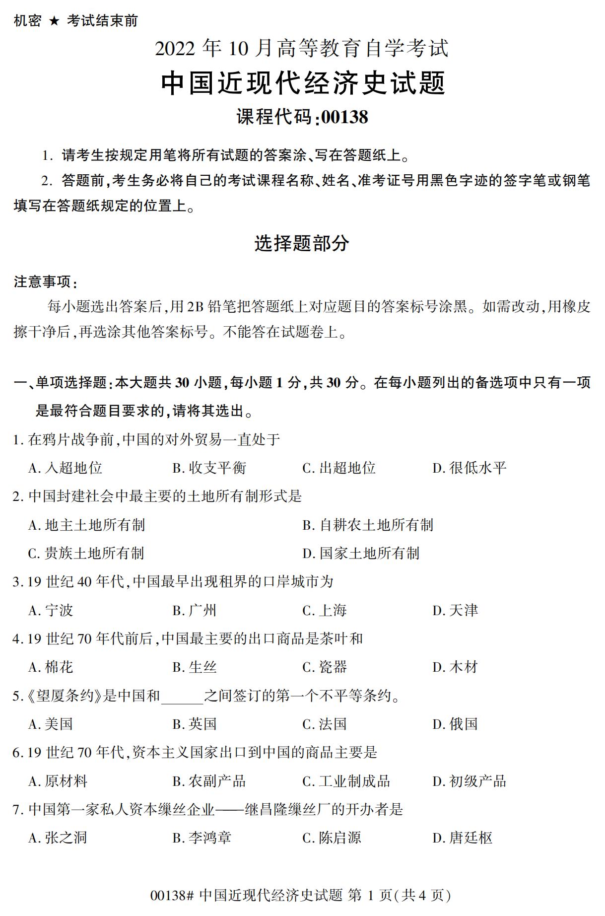 以上就是“2022年10月浙江自考00138中国近现代经济史试题”的全部内容,关注浙江自考网,我们将持续为您推送有关浙江自考复习备考、自考资讯、相关政策等信息,自考报名流程和考试注意事项不懂的,想了解自考动态的,或者是自考信息不懂的考生,可添加【浙江自考交流群】了解更多。