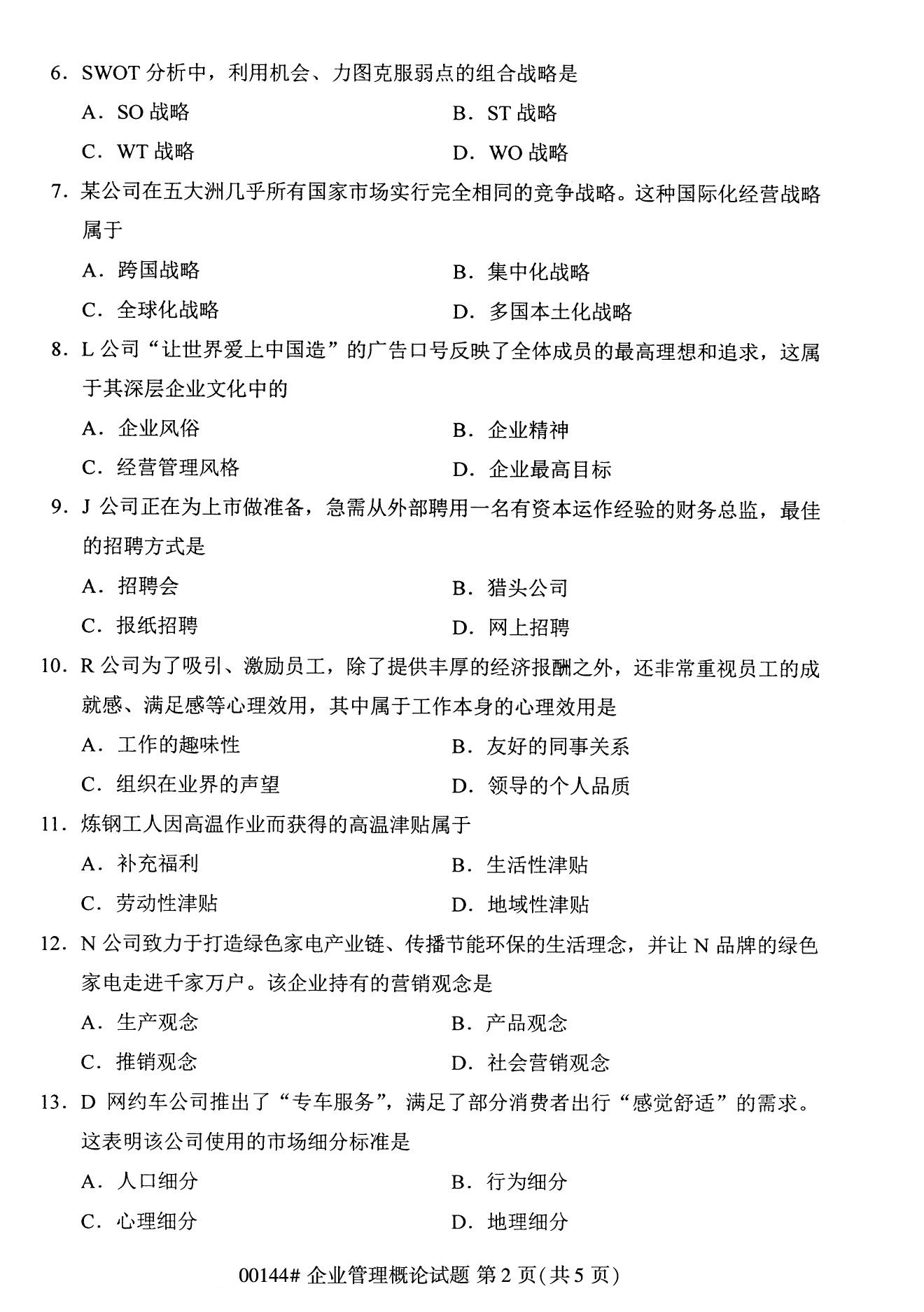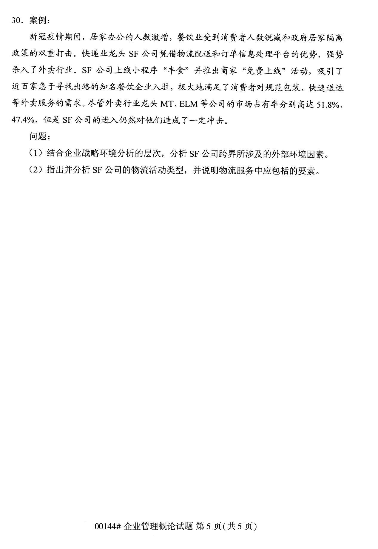 - 2024年10月浙江自考00107现代管理学试题 12-30