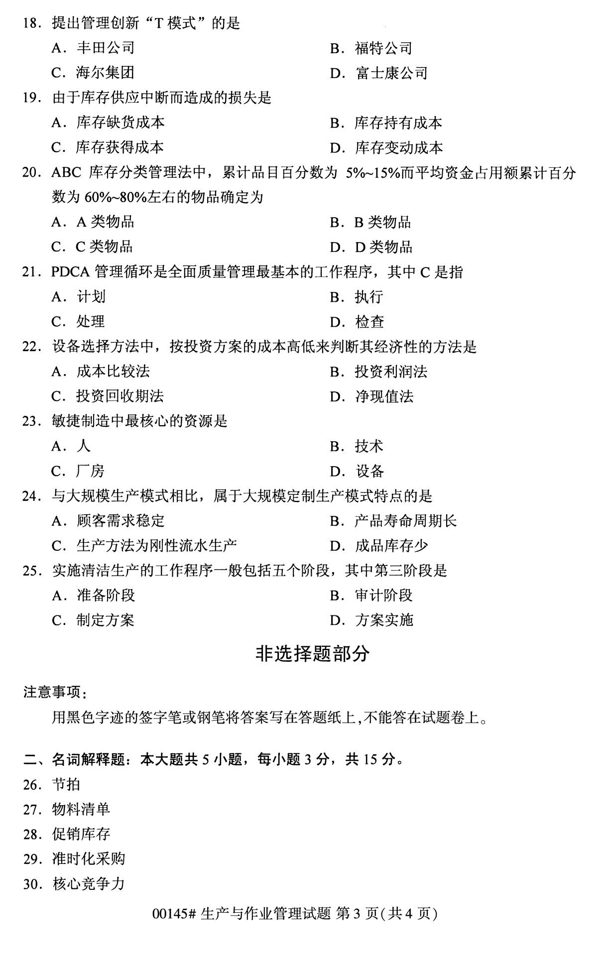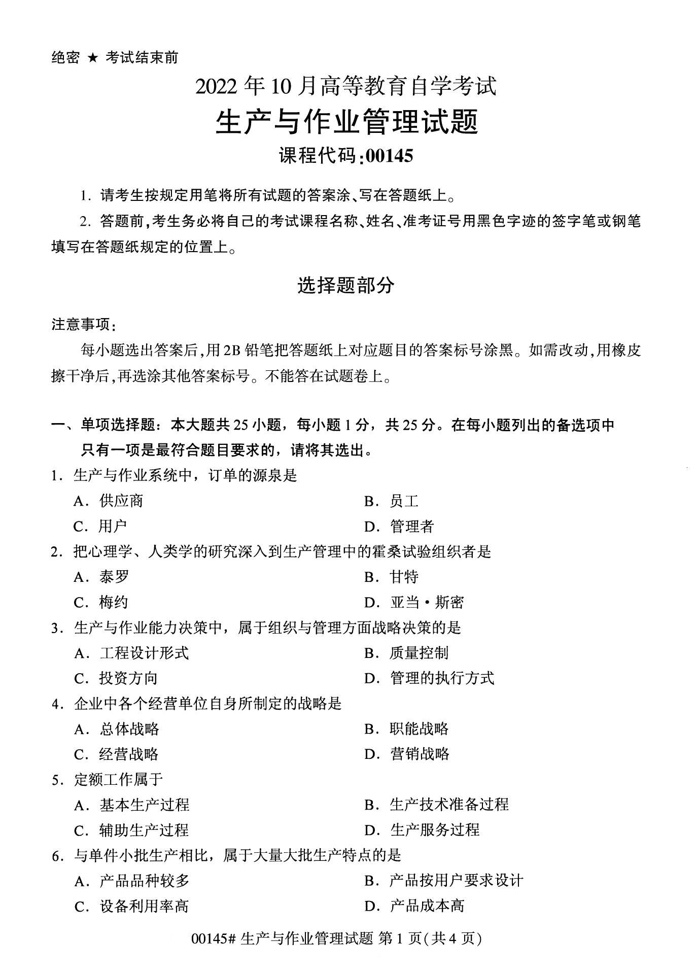 以上就是“2022年10月浙江自考00145生产与作业管理试题”的全部内容,关注浙江自考网,我们将持续为您推送有关浙江自考复习备考、自考资讯、相关政策等信息,自考报名流程和考试注意事项不懂的,想了解自考动态的,或者是自考信息不懂的考生,可添加【浙江自考交流群】了解更多。
