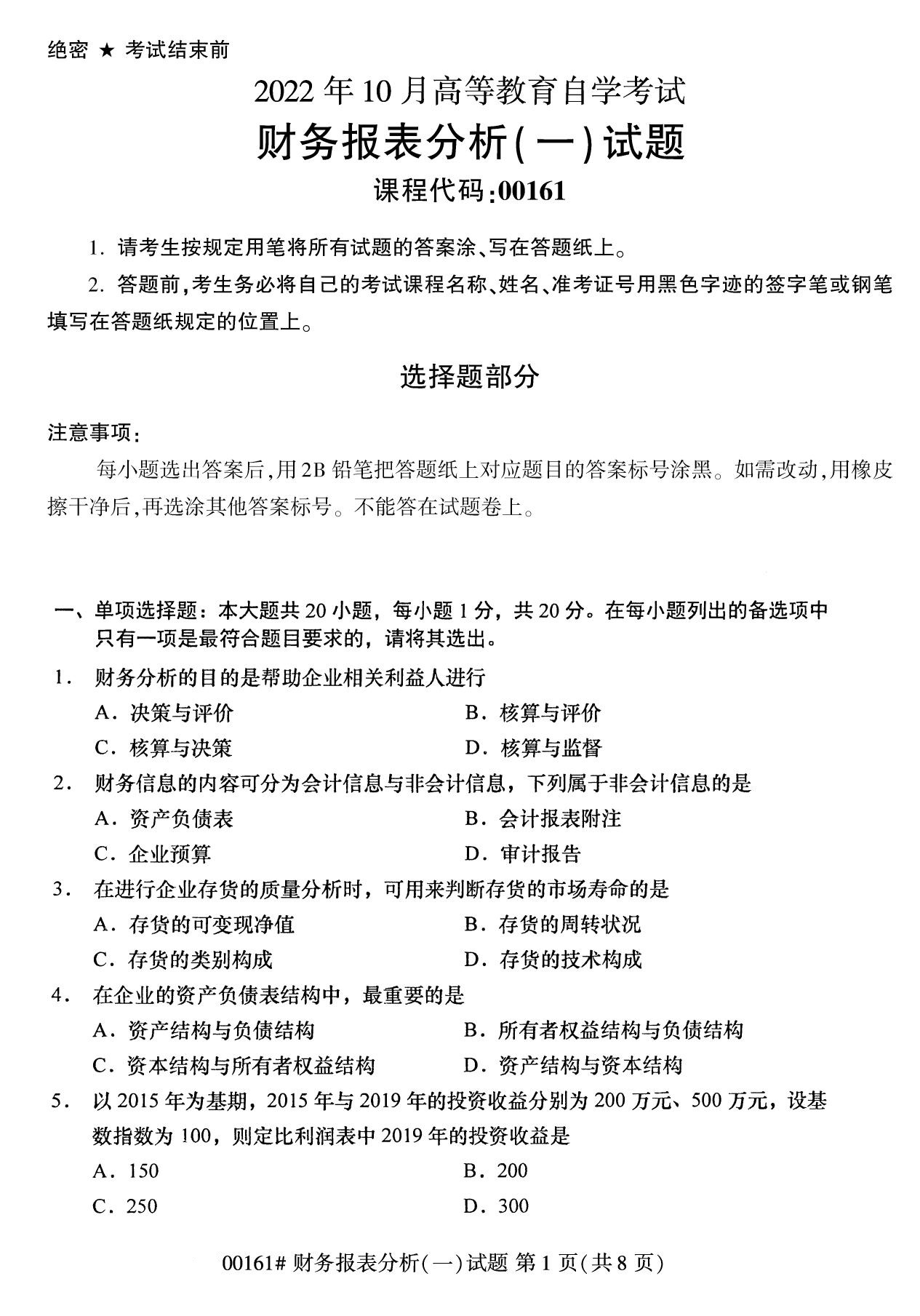 • 所在位置:浙江自考网 > 自考试卷 > 2022年10月浙江自考00161财务报表分析(一)试题