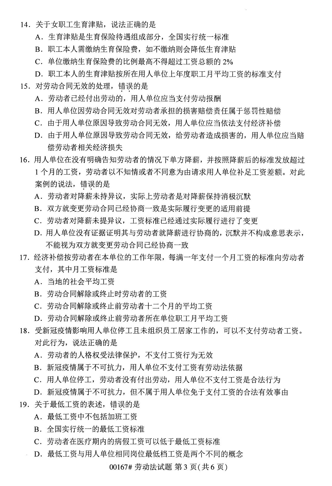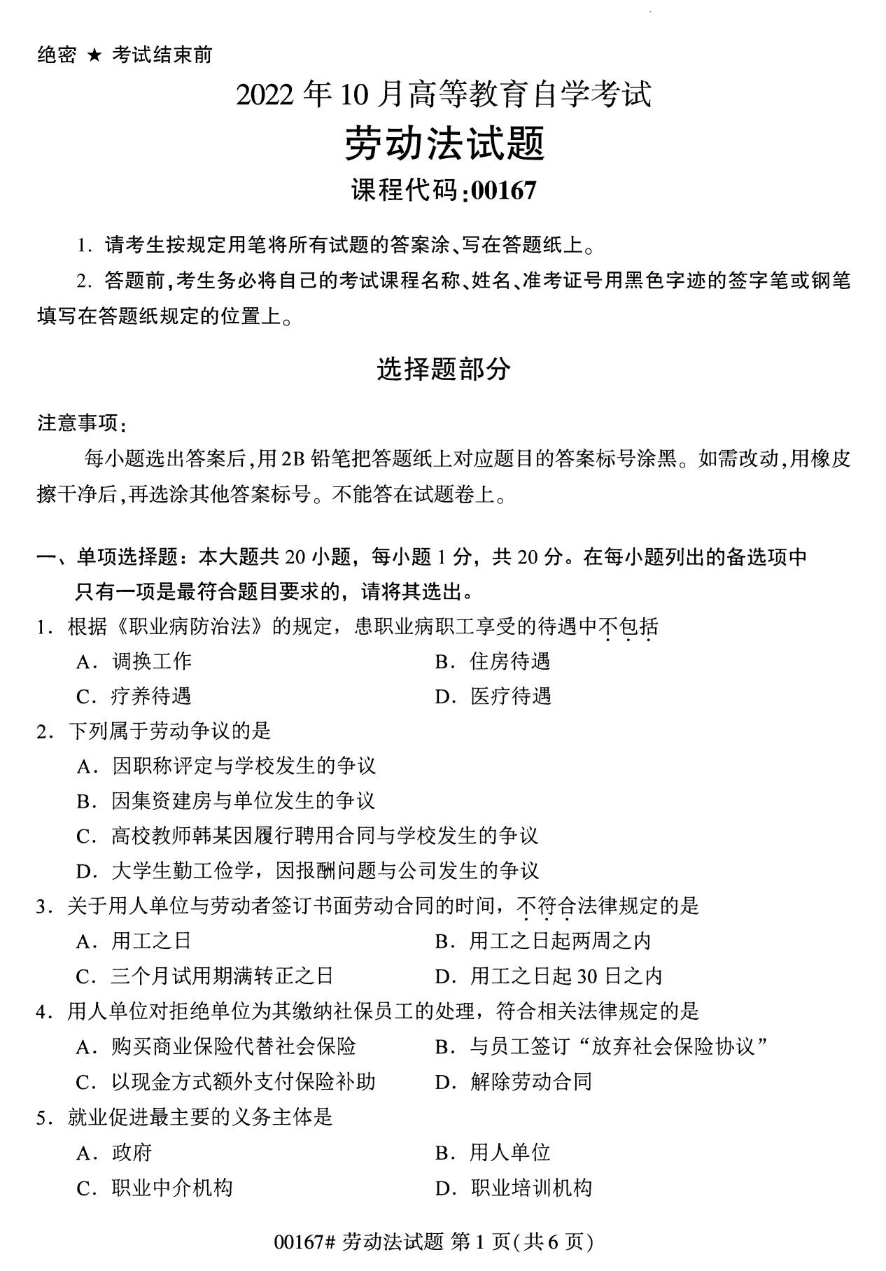 • 所在位置:浙江自考网 > 自考试卷 > 2022年10月浙江自考00167劳动法试题