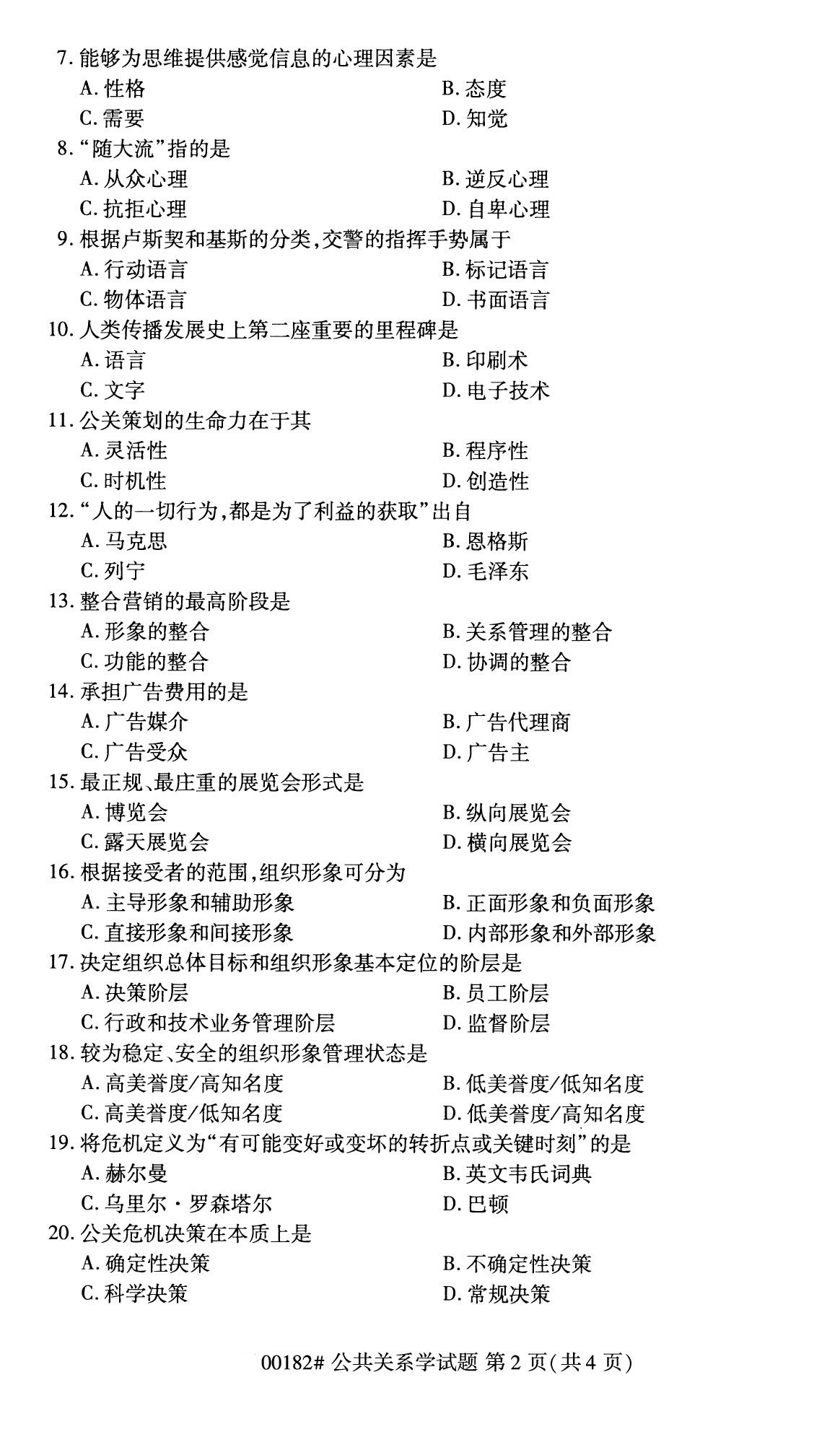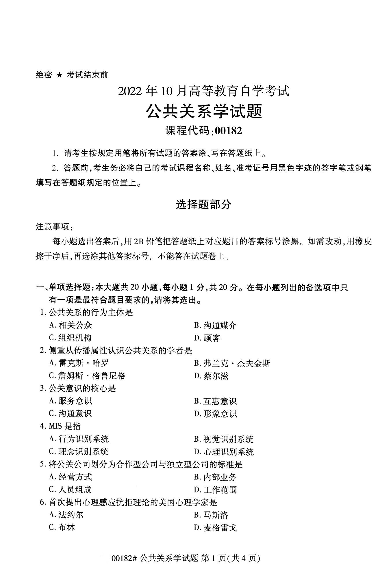 • 所在位置:浙江自考网 > 自考试卷 > 2022年10月浙江自考00182公共关系学试题